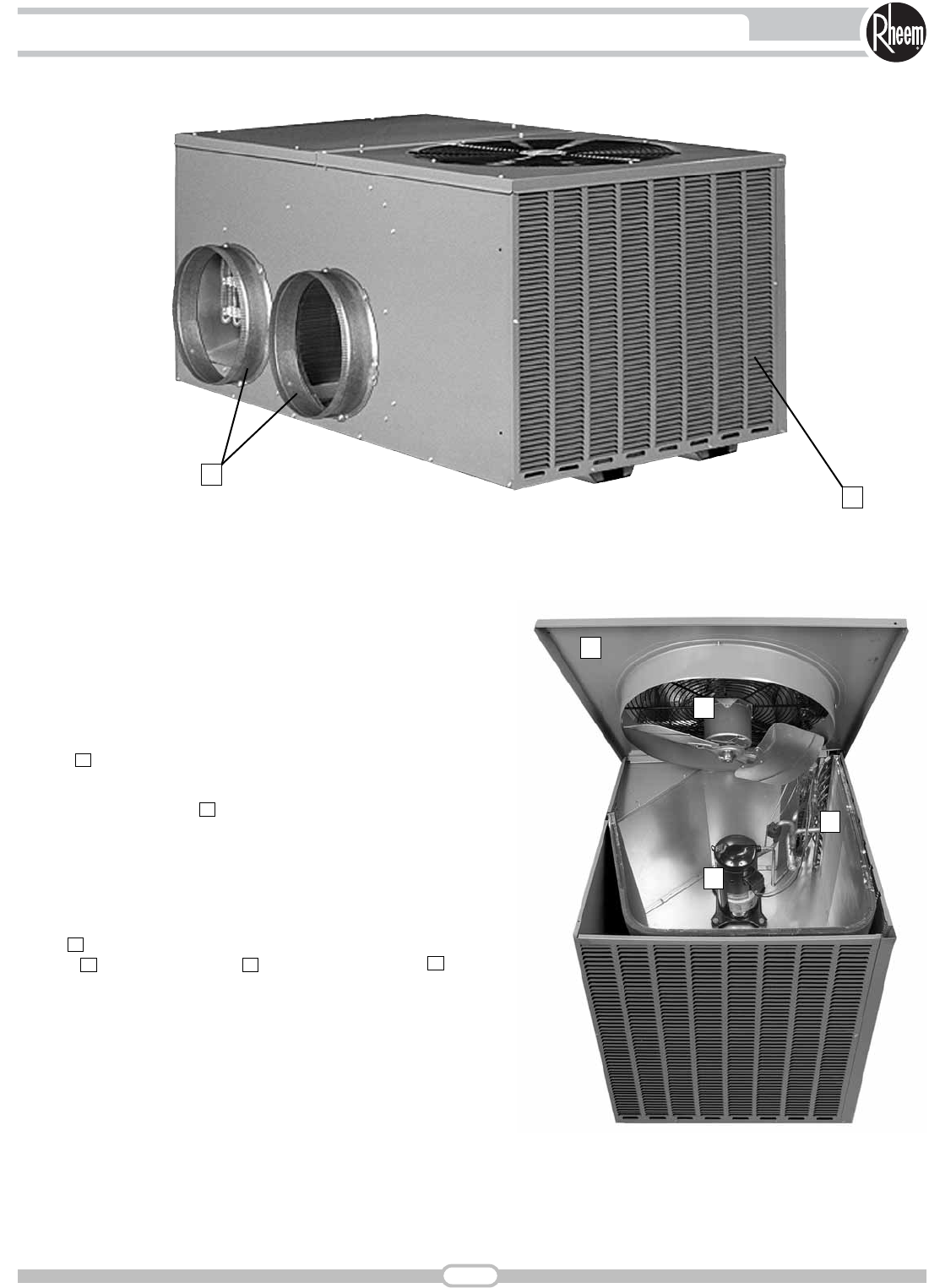 pressor (), outdoor fan motor (), and refrigerant tubing ()