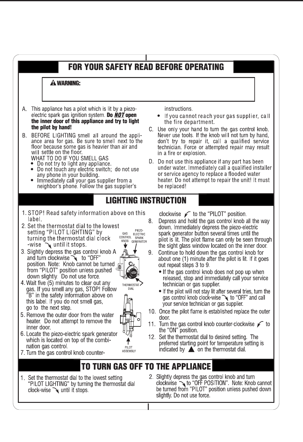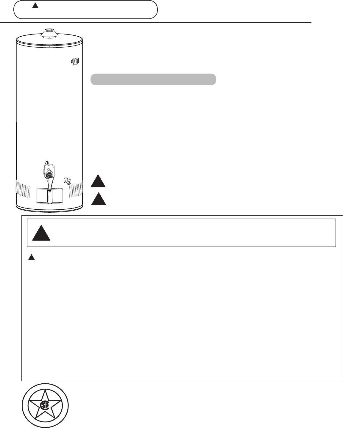 unsafe operation of the water heater. To avoid the risk of fire, explosion, or asphyxiation