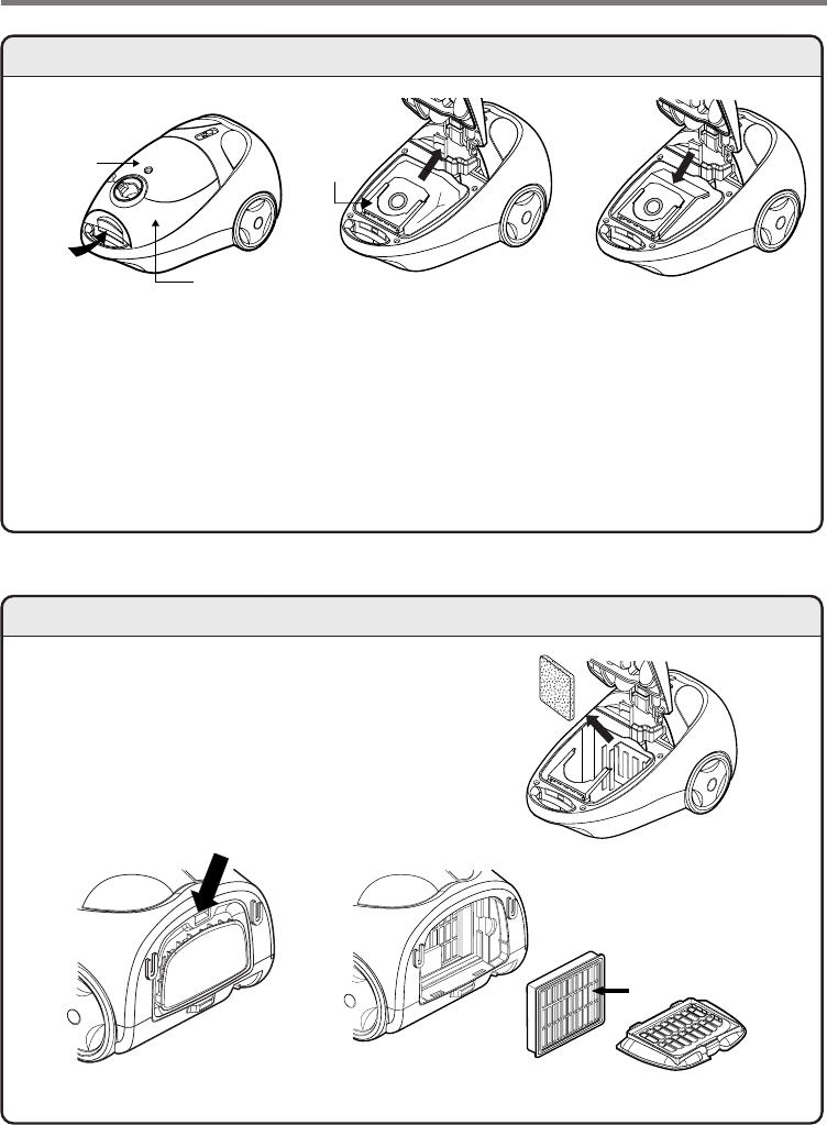 hose and open the dust cover. • Pull the shutter of the vacuum bag.