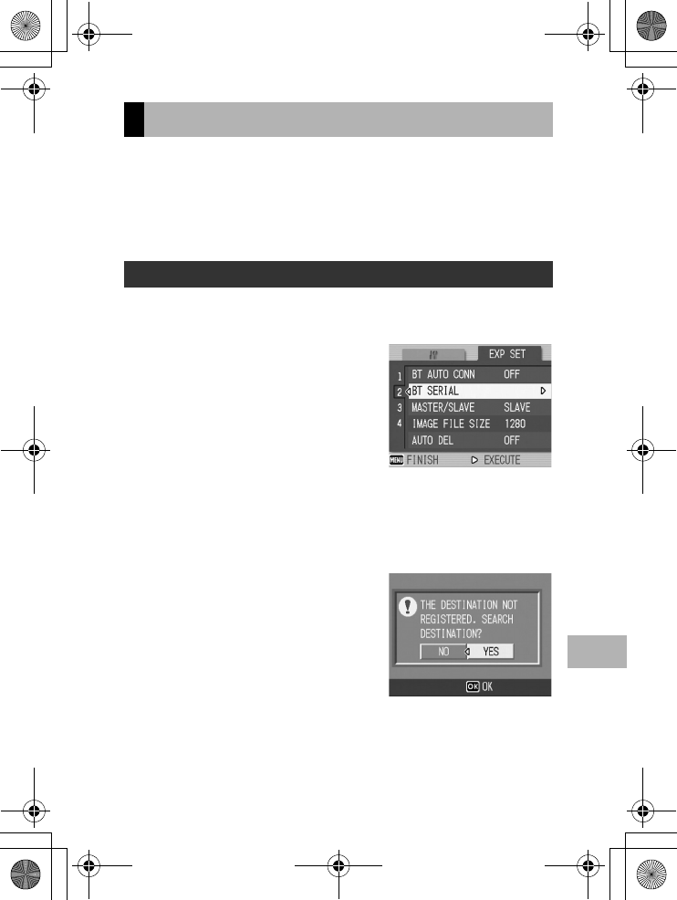 • For Caplio 500SE-W, check that [CHANGE COM] is set to [BT] on the