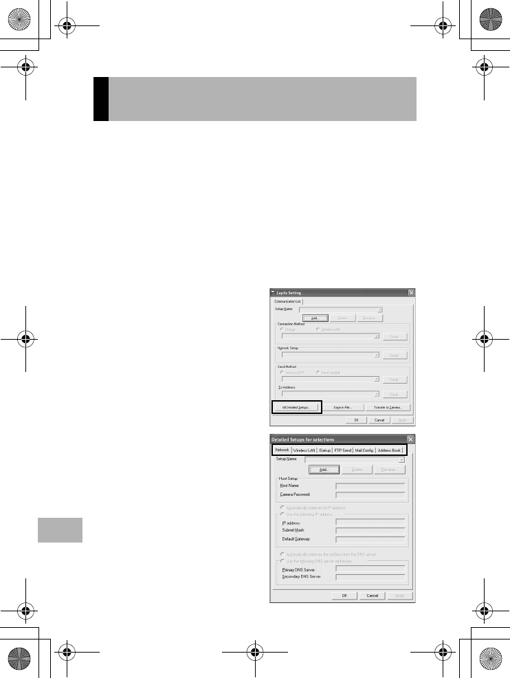 •In Caplio Setting, if the [Cryptography]/[Authentication] on the [Wireless LAN] tab are