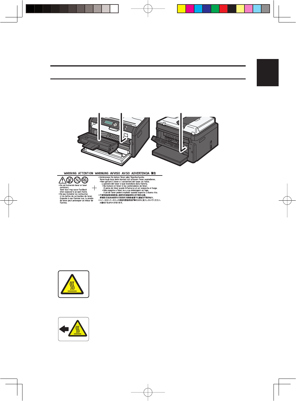 naked flames. Doing so risks fire and burns. Toner will ignite on con-