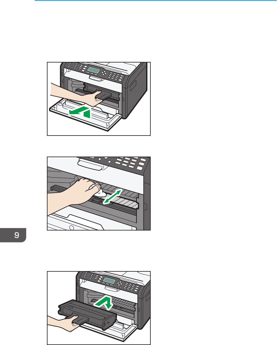 If toner is spilled on the floor, remove the spilled toner slowly using a