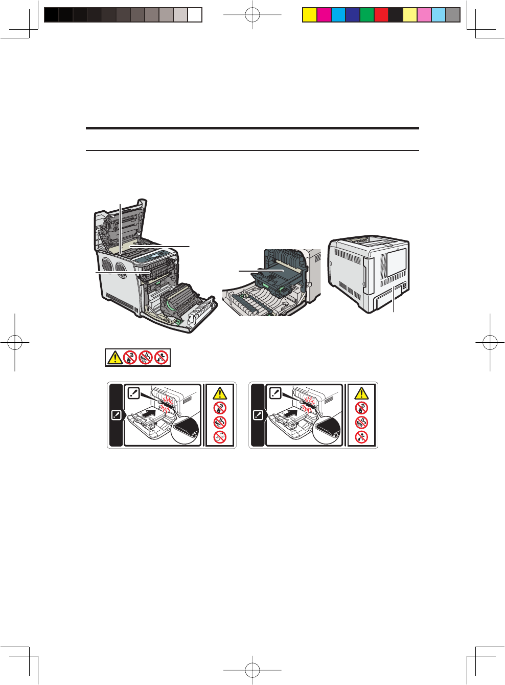 The inside of the machine could be very hot. Do not touch the parts with a