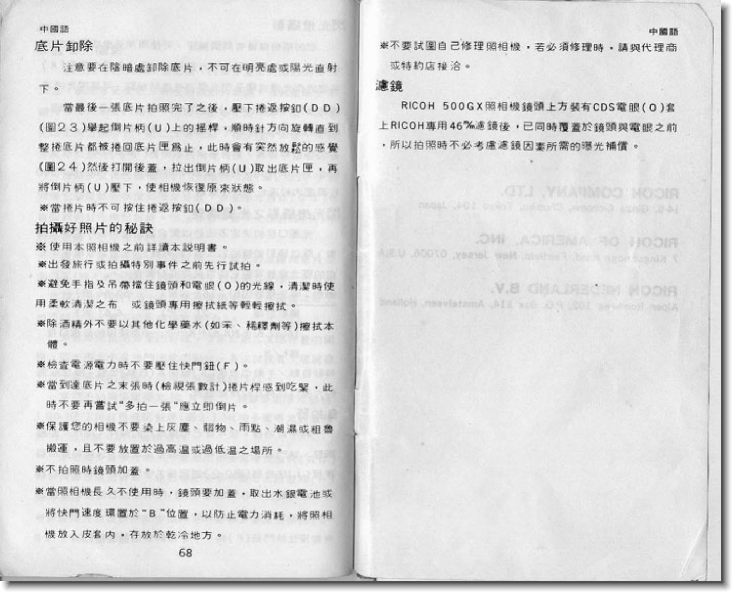 Ricoh 500 Gx Operating Instructions