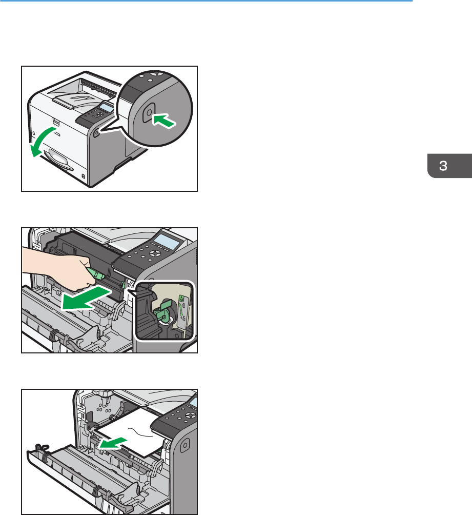 3. If you can see the jammed paper in the output tray, keep the rear cover opened and