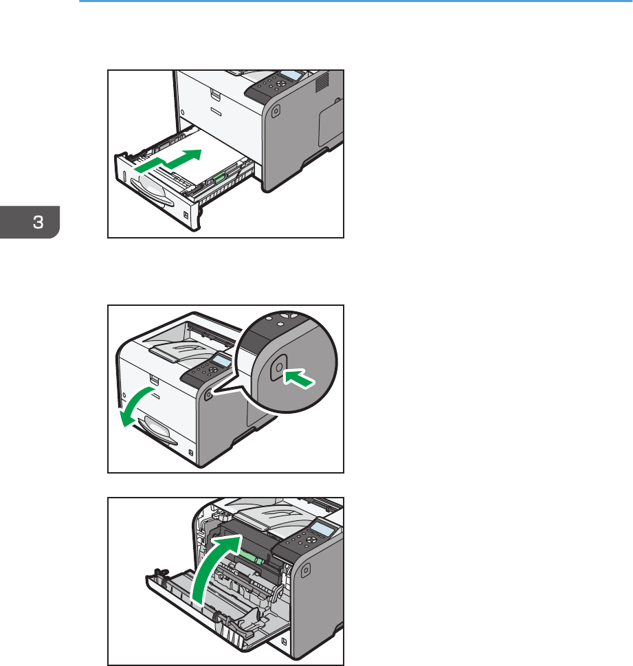 6. Open the front cover by pushing the front cover release button, and then close it to reset