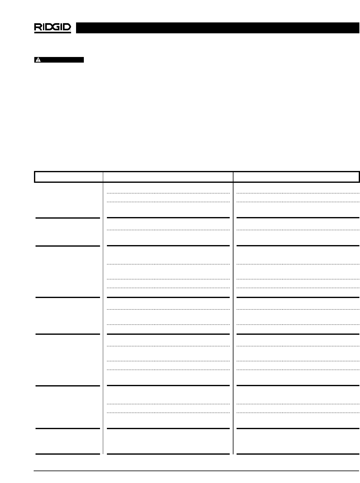 à la RIDGE TOOL COMPANY, Elyria, Ohio, ou bien le remettre à un réparateur RIDGID®agréé. Les