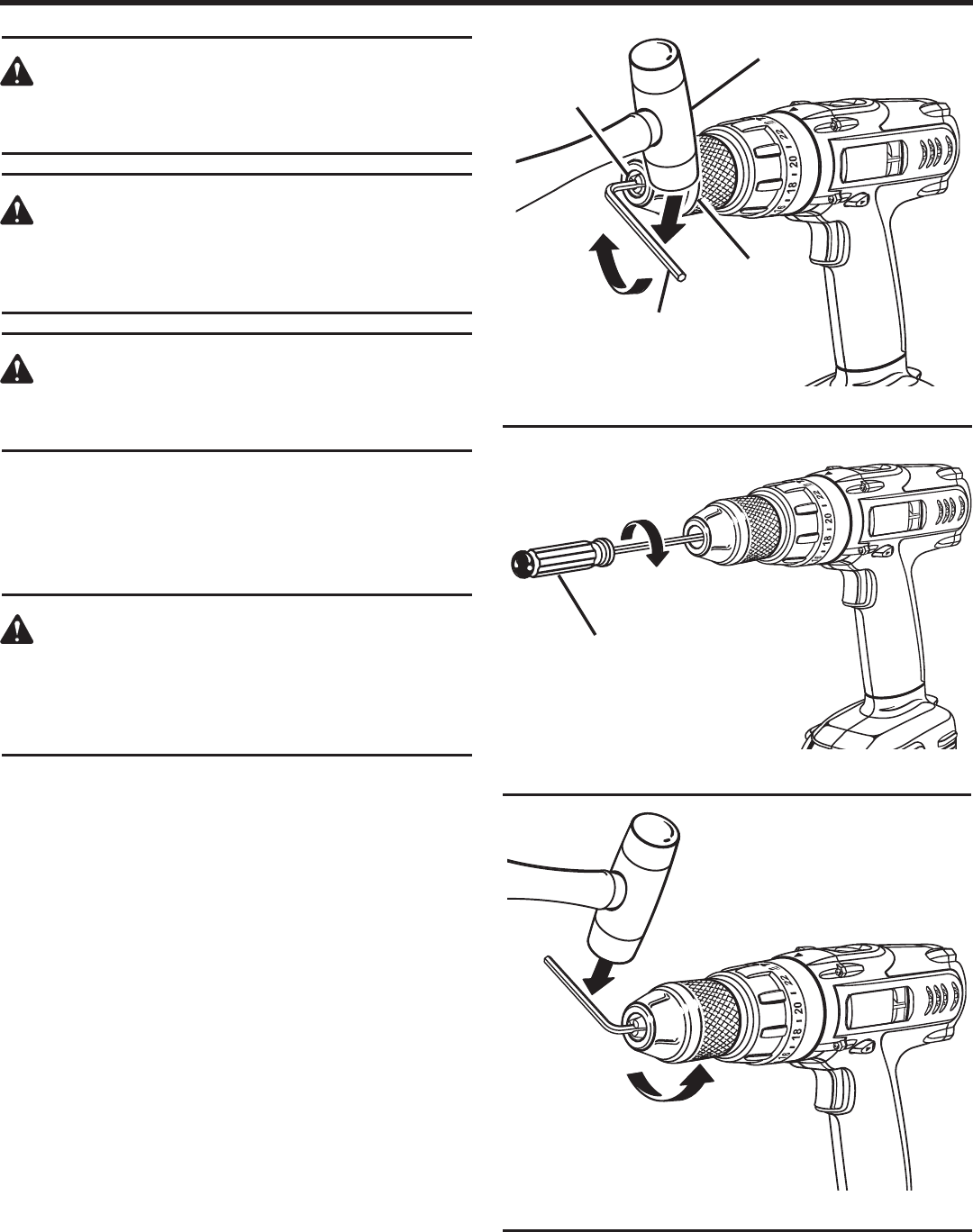 n Remove adjusting keys or wrenches before turning