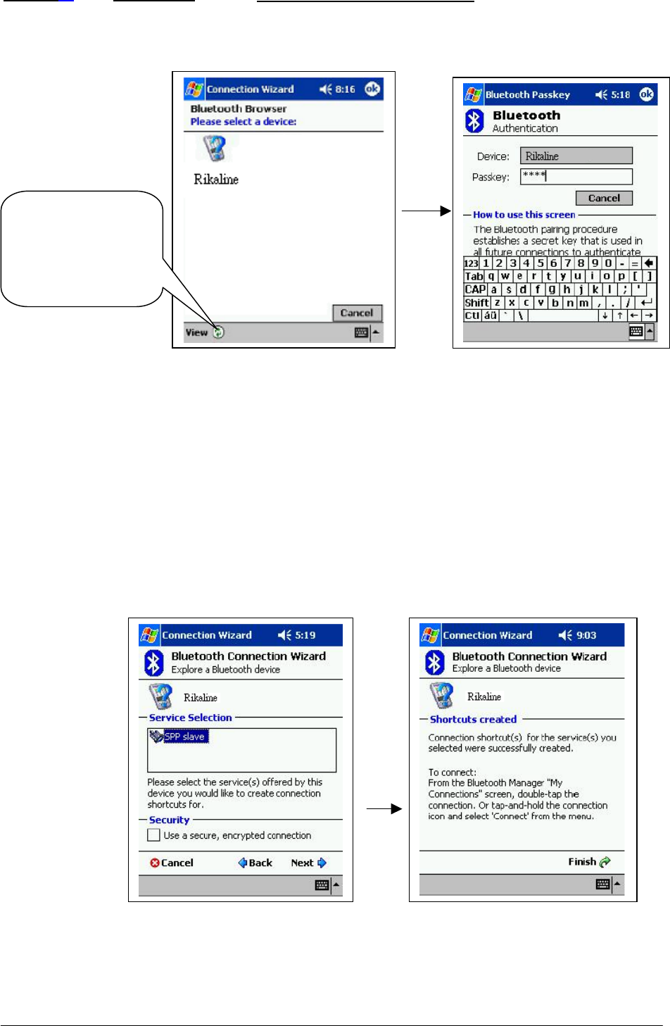 you have to click “Serial Port” in Bluetooth setting window in your PDA/PC, and then mark “Authorization