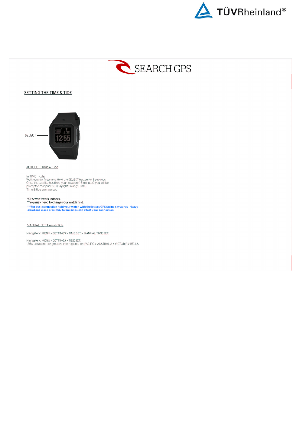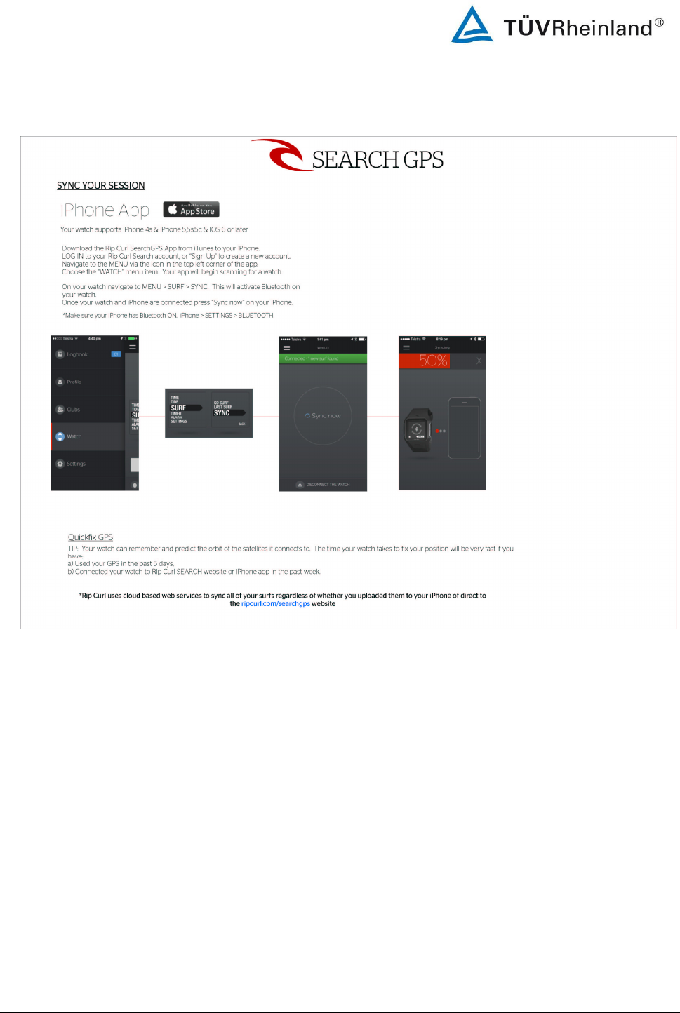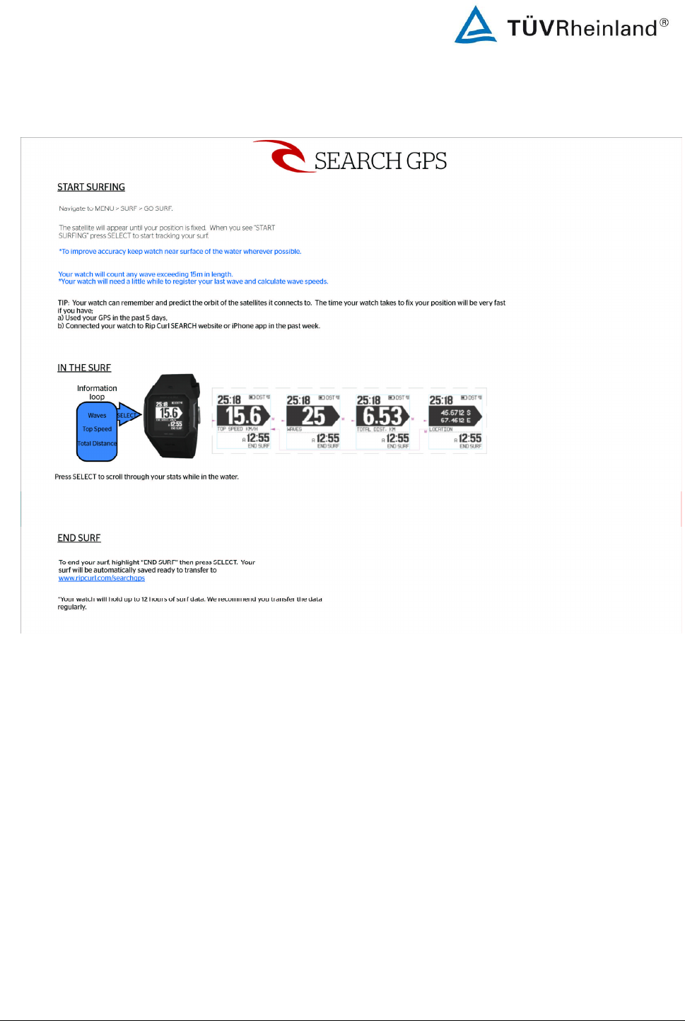 Rip Curl A1111 Bluetooth Low Energy Watch with GPS Receiver User Manual 14034535 001 FCC