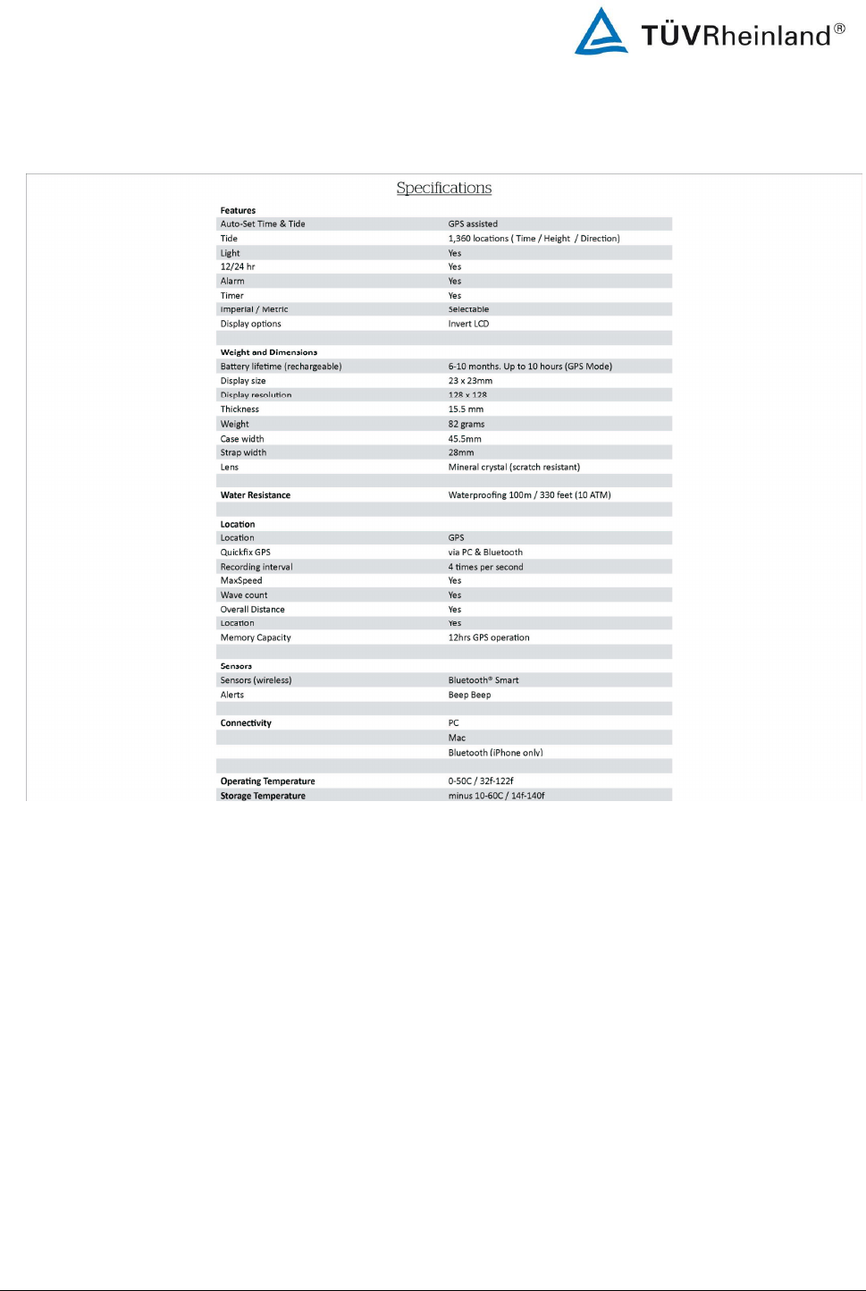 Rip Curl Pty Ltd Bluetooth Low Energy Watch with GPS Receiver 14034535 001 FCC