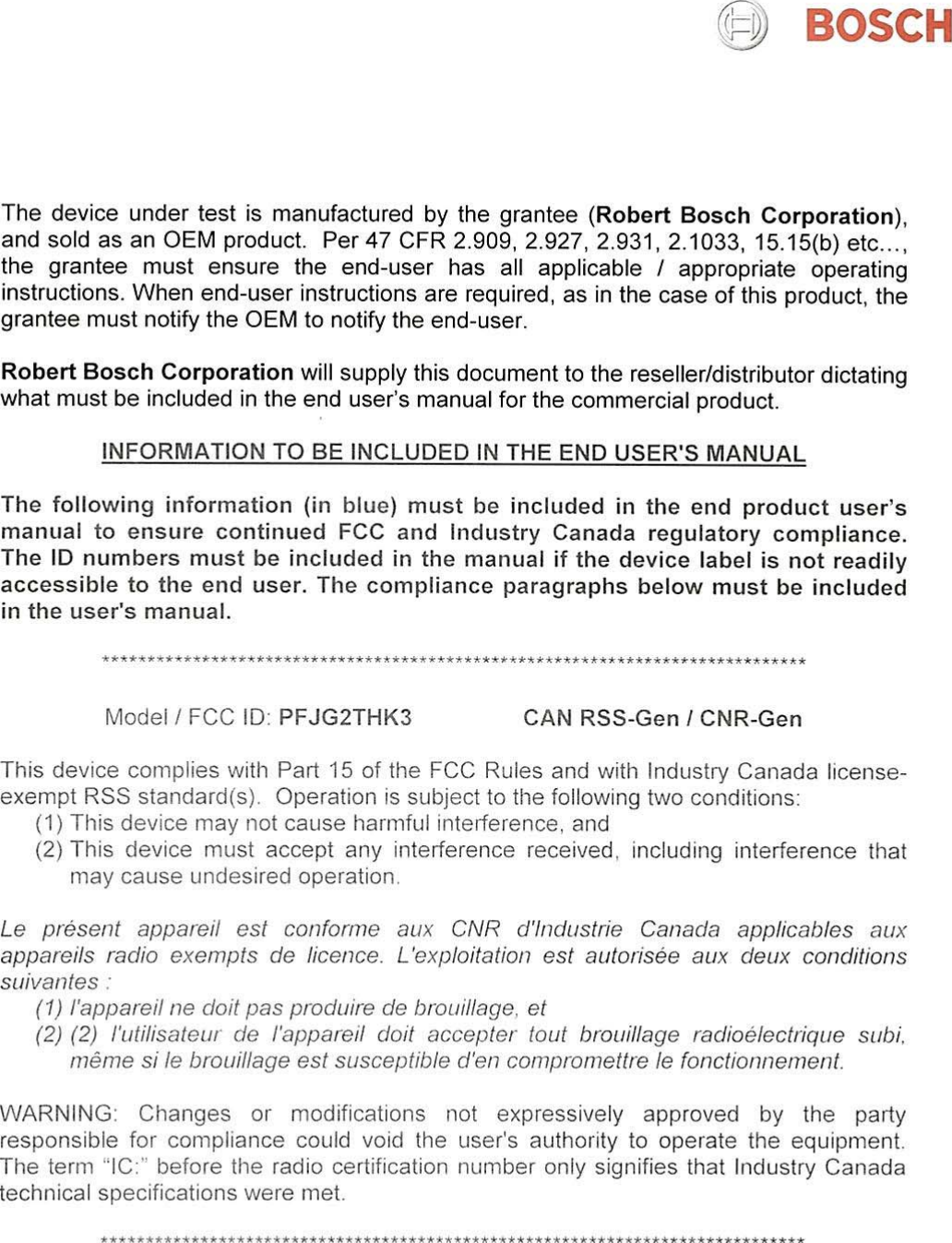 Robert Bosch G2THK3 RF Receiver User Manual Scanned