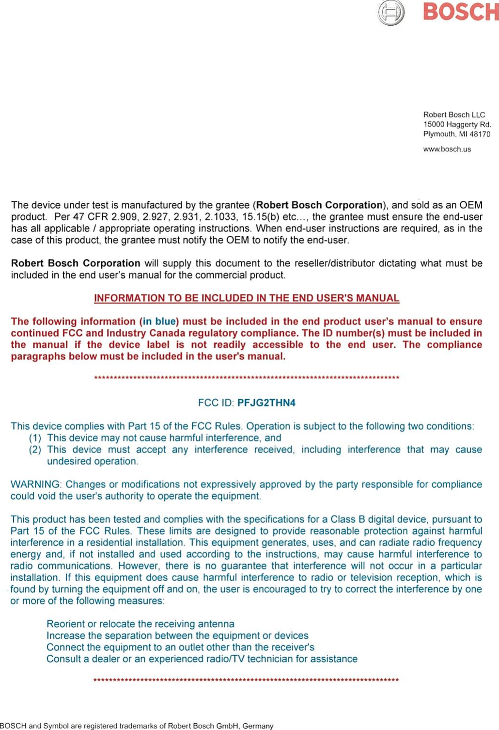 Robert Bosch G2THN4 RF Receiver User Manual Scanned