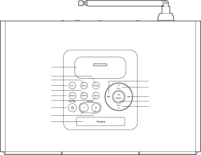 9. Mode button (DAB,FM,iPod or Aux in)