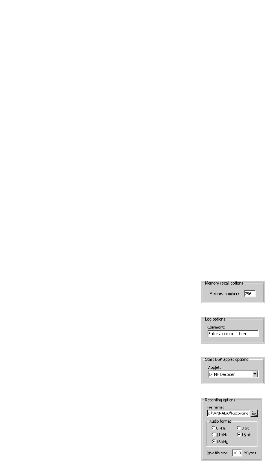 various parameters associated with the applet. All WiNRADiO functions can still be used
