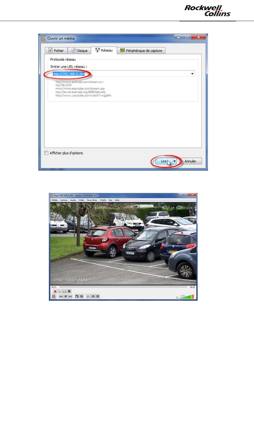 - In the « network» tab, enter the URL of the camera video stream and click on
