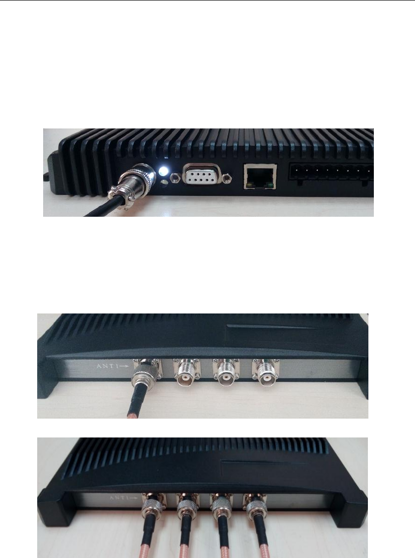 Connect the antenna(s) with TNC port to the reader, as illustrated below: