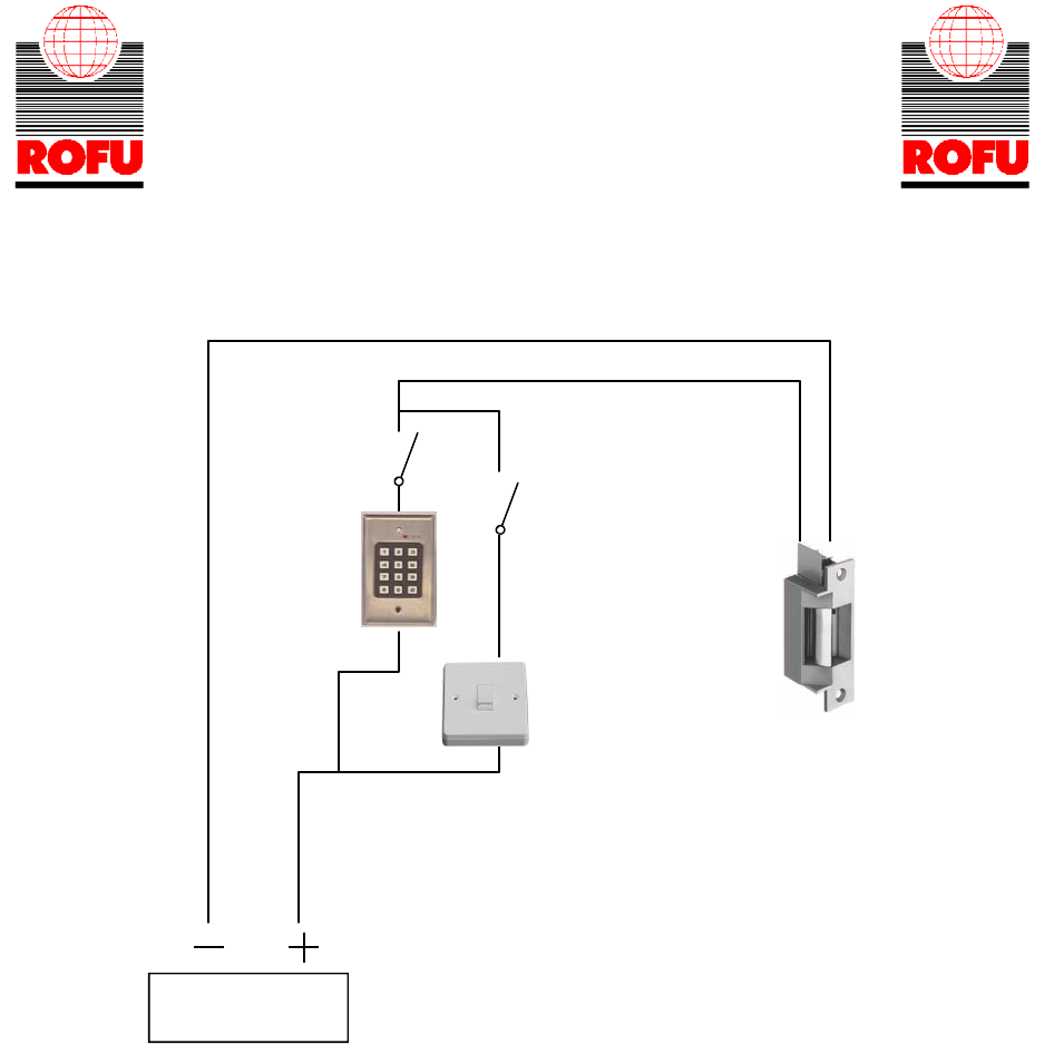 Depressing the push button or activating the keypad would close the circuit, allow power to flow and release the strike.