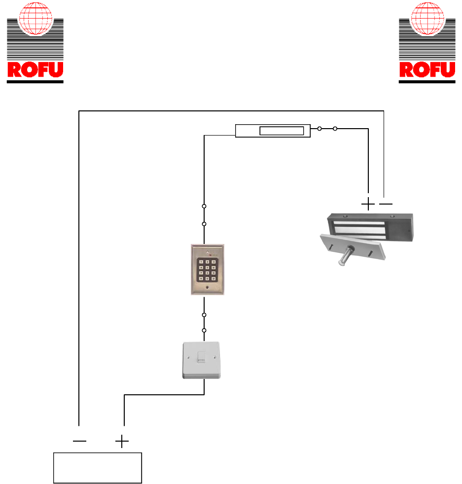 source to ensure that it is DC output, or you can damage the magnetic lock or fail safe strike,