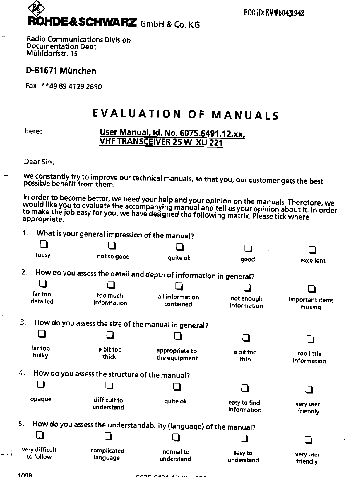 Rohde and Schwarz and Co KG 60431942 User Manual 8