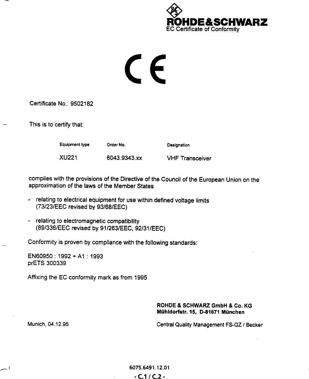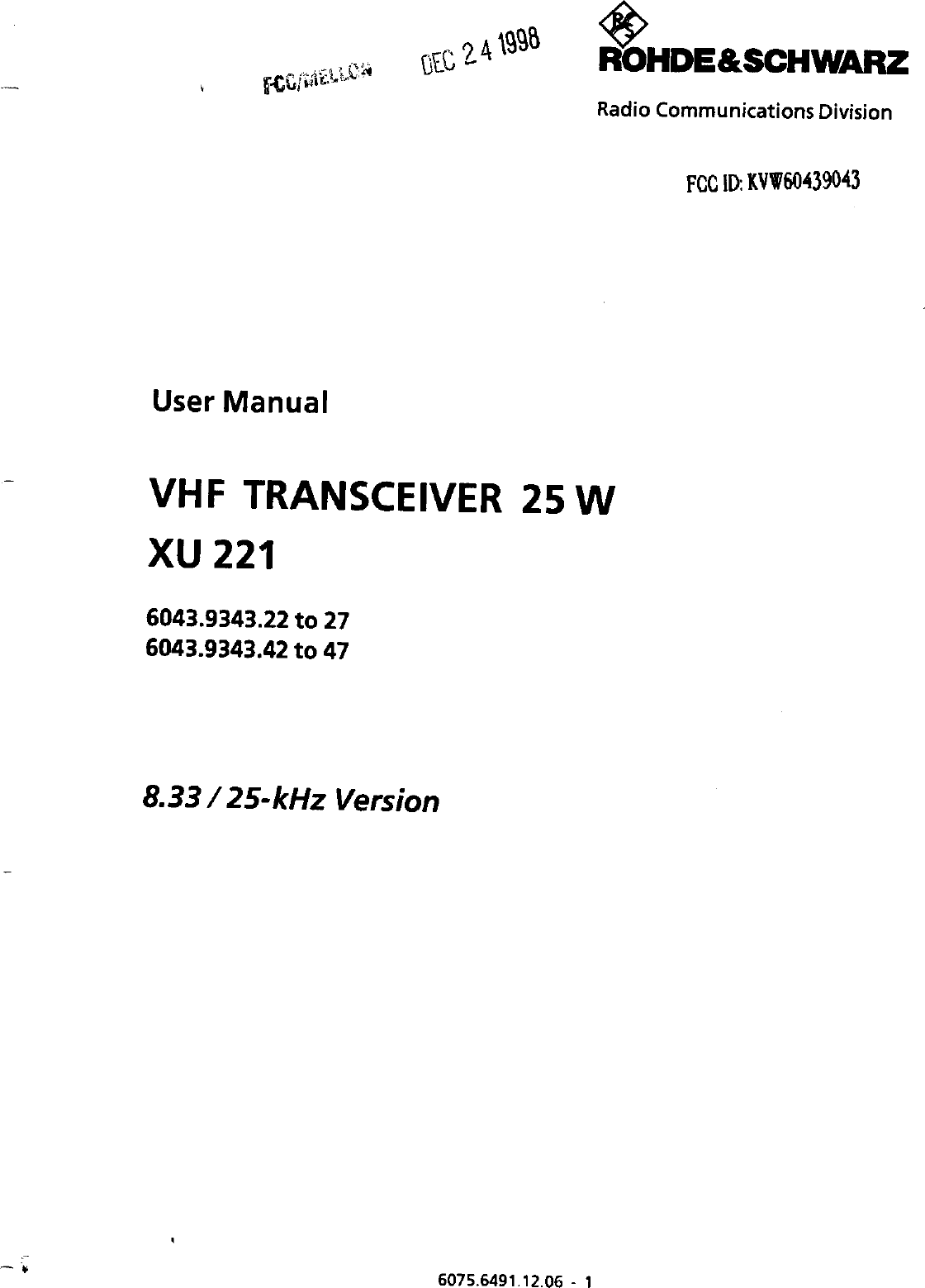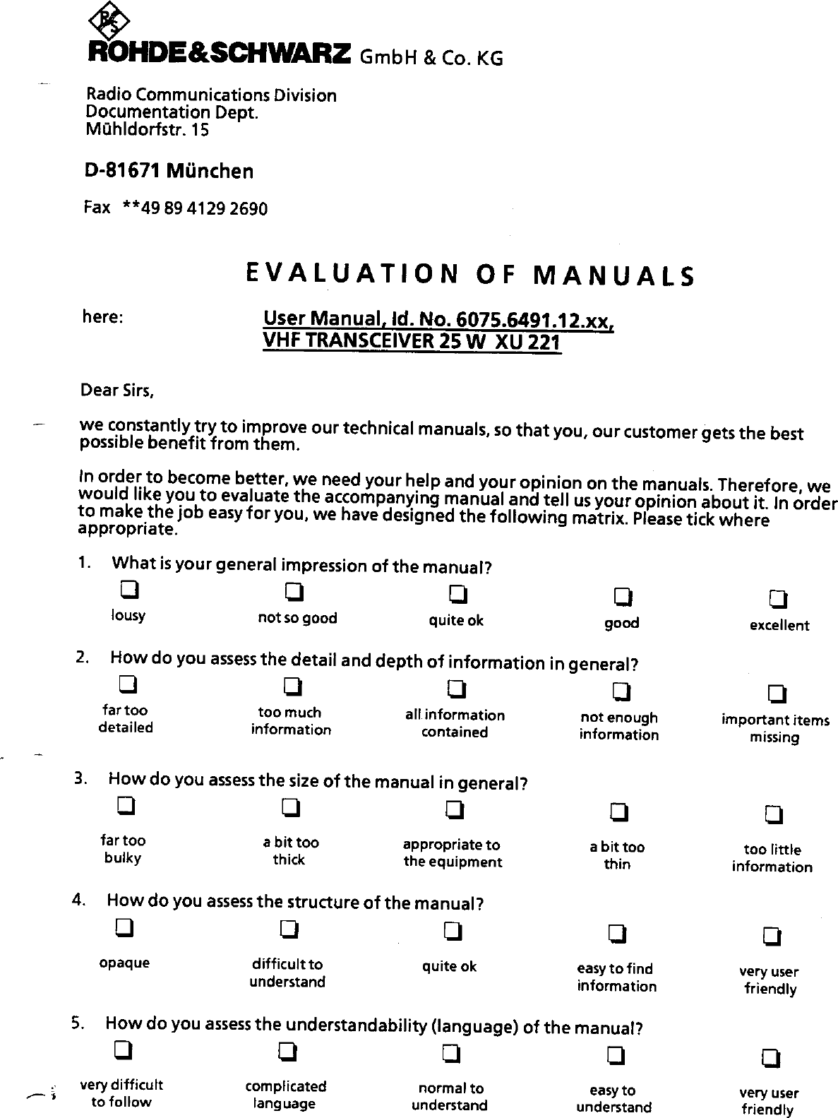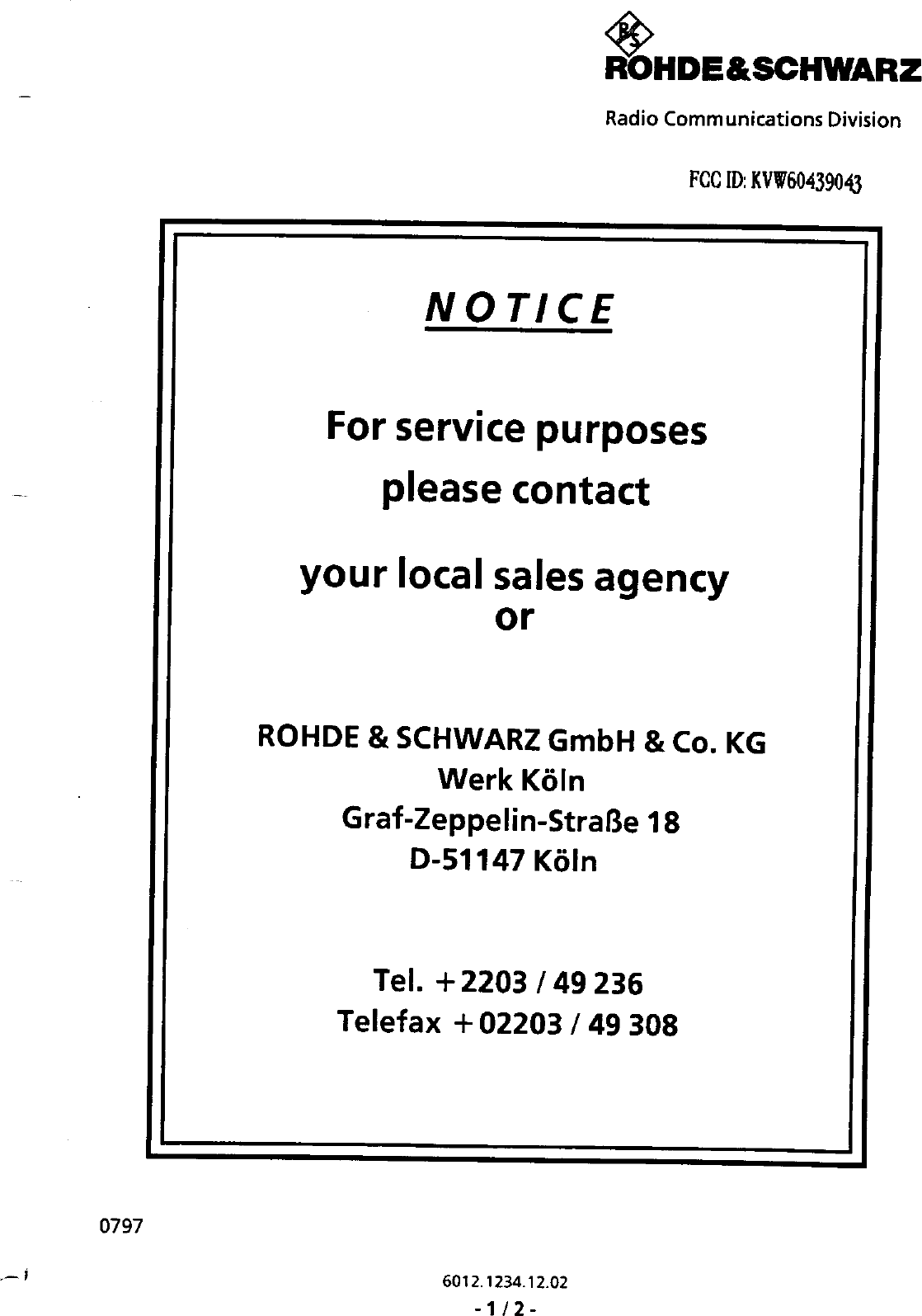 Rohde and Schwarz and Co KG 60439043 User Manual 29034