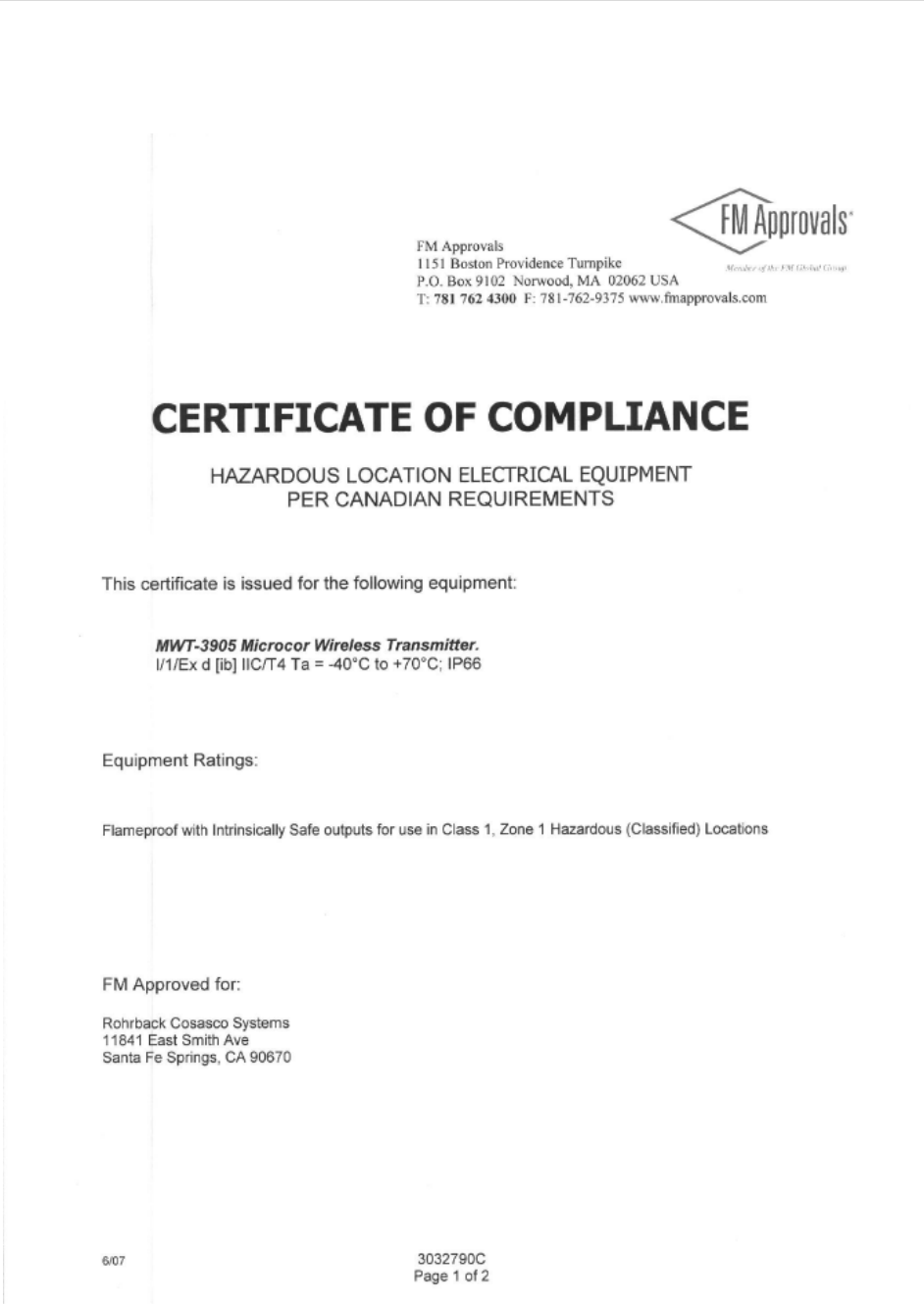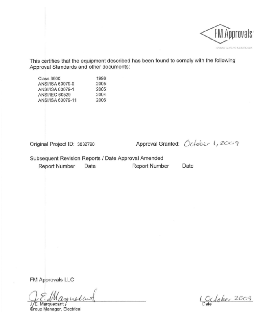 Factory Mutual Approvals (FM Approvals) Certification