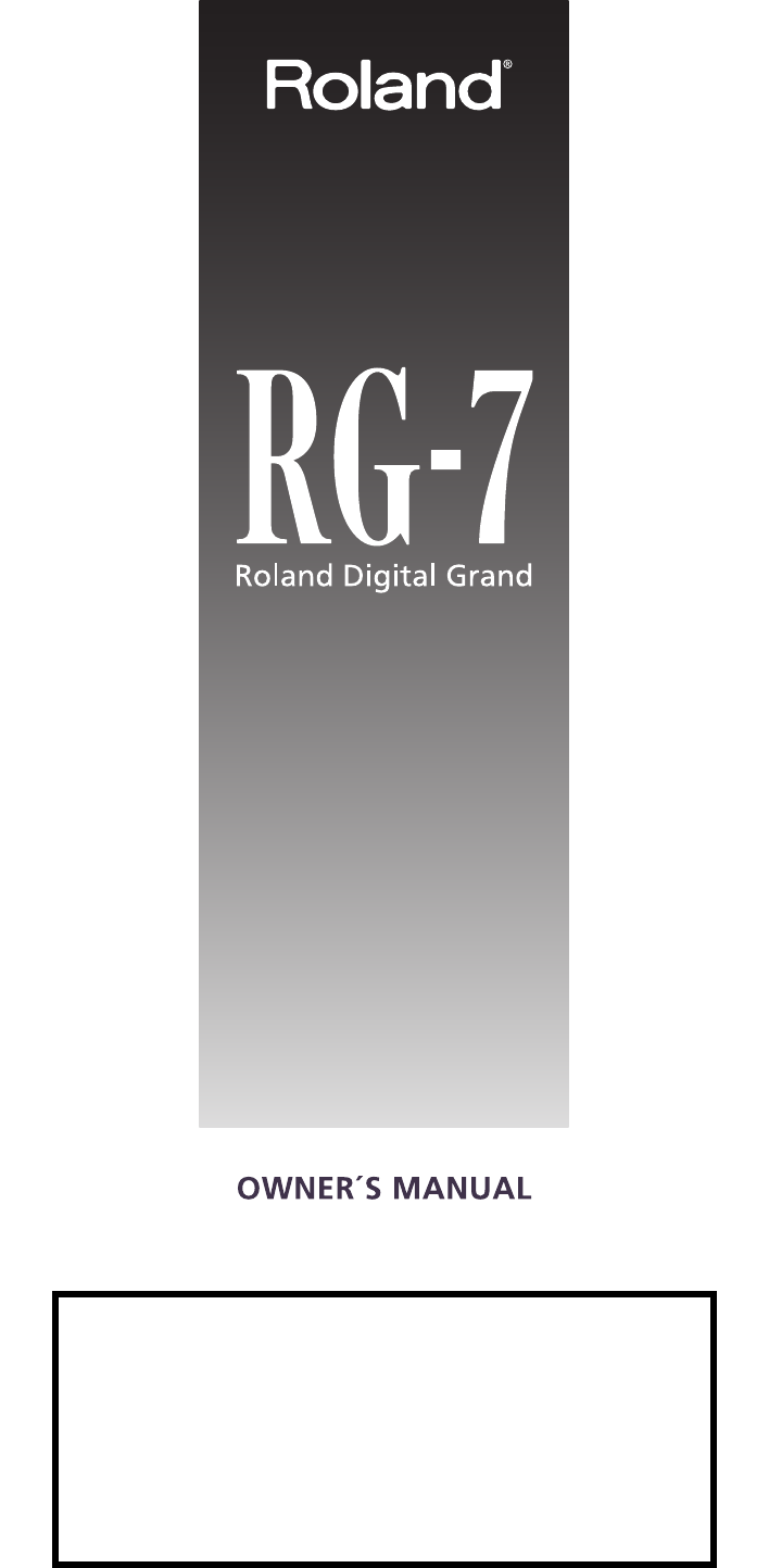 Roland RG-7 ELECTRONIC PIANO WITH USB PORT User Manual RG 7 e