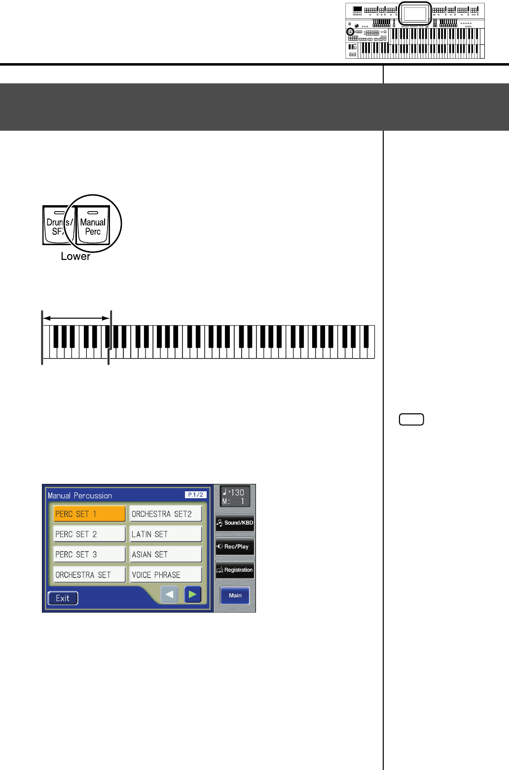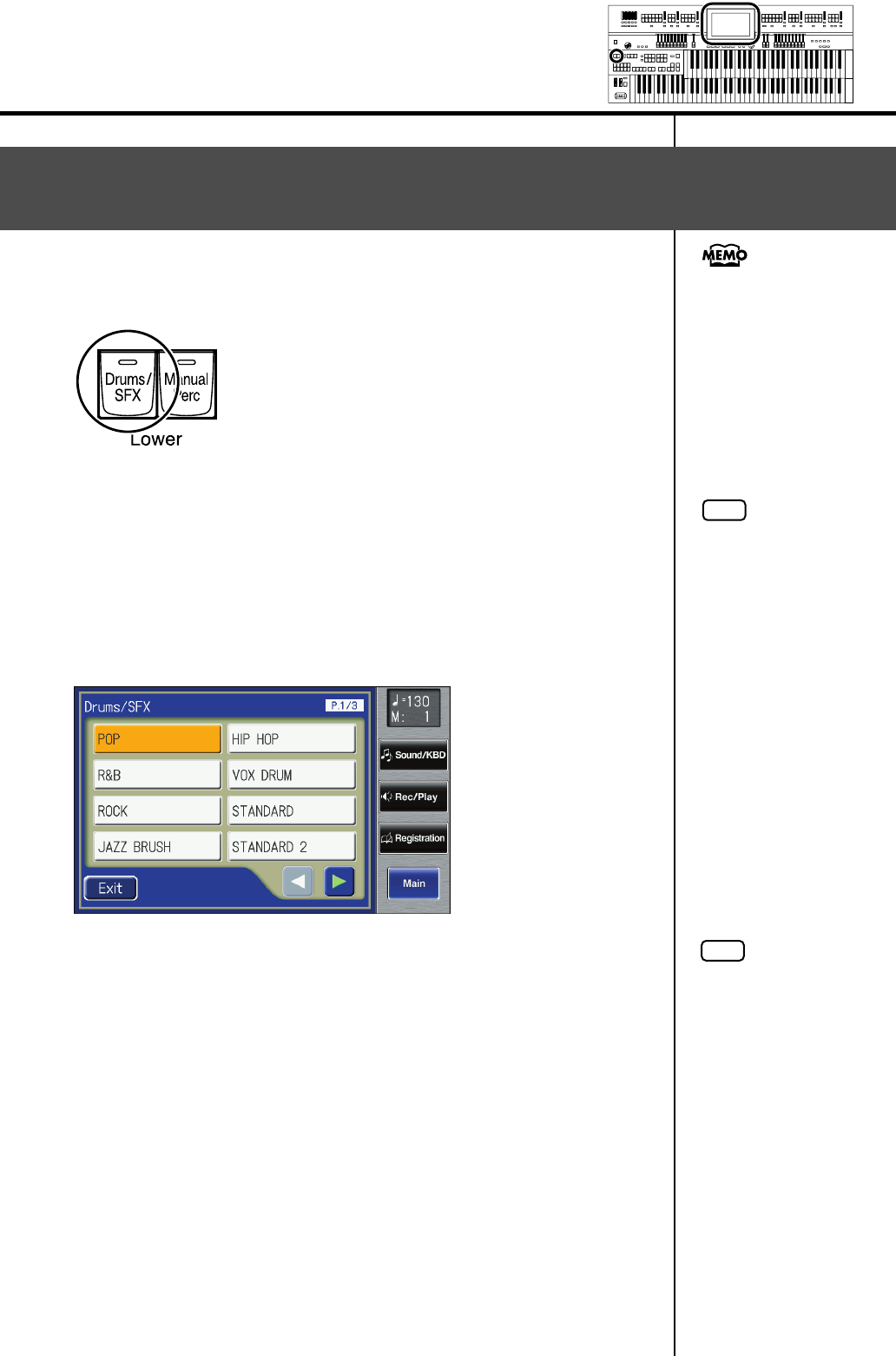 - Playing Drum Sounds or Sound Effects from the Entire Lower Keyboard (Drums/SFX)