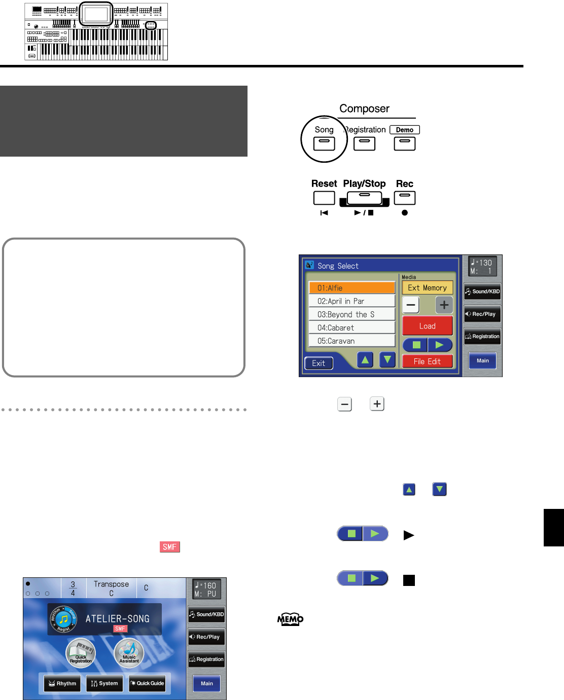 - Playing Back Performance Songs Stored on USB Memory and SMF Music Files