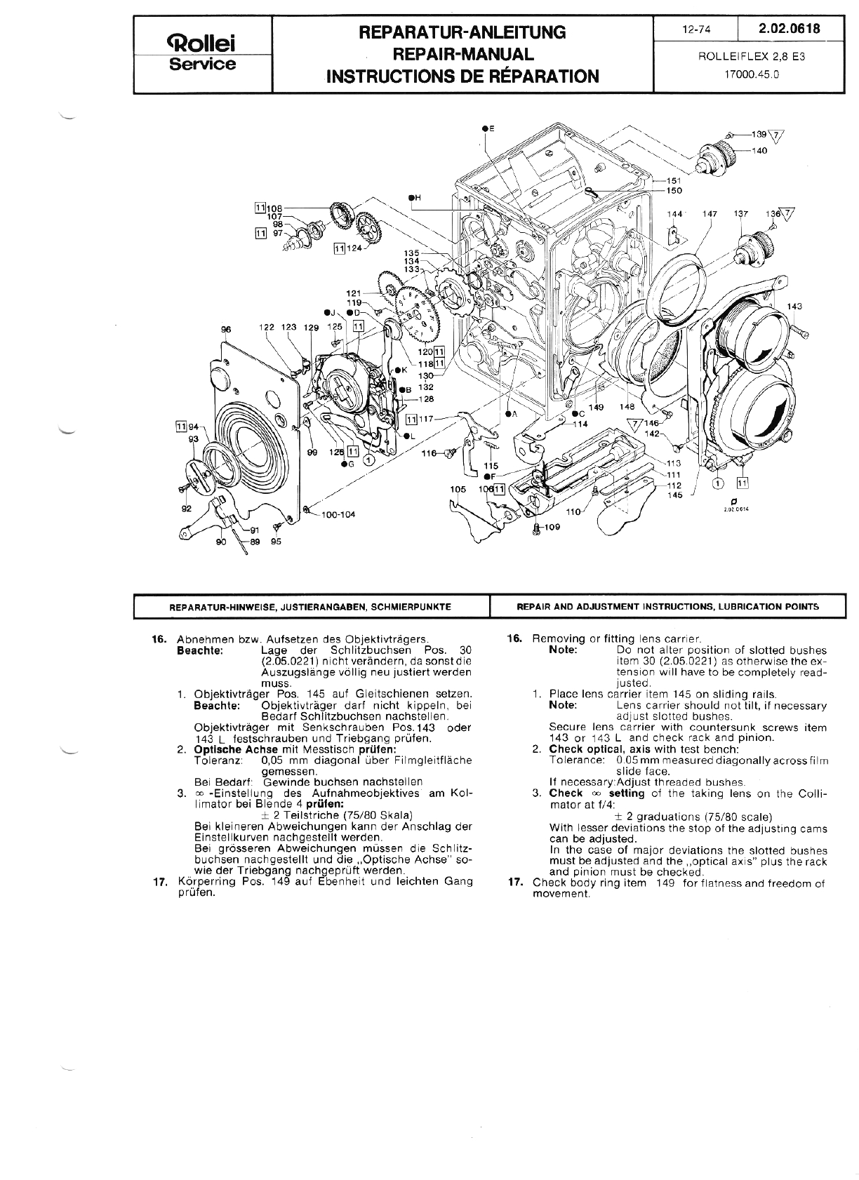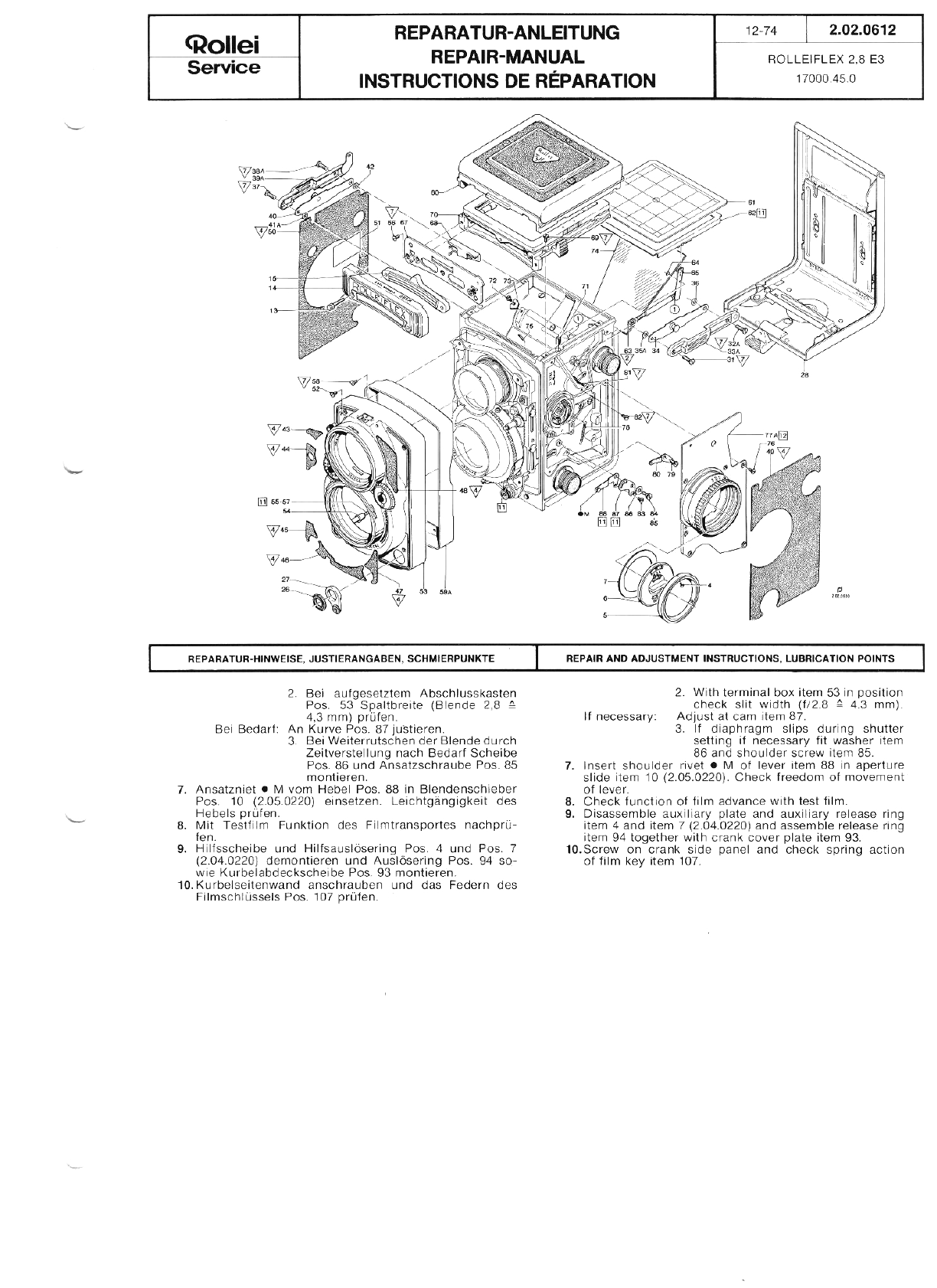Rolleiflex 2.8 E - Repair Manual Rolleiflex28E Free User Guide for Rollei Camera, Manual