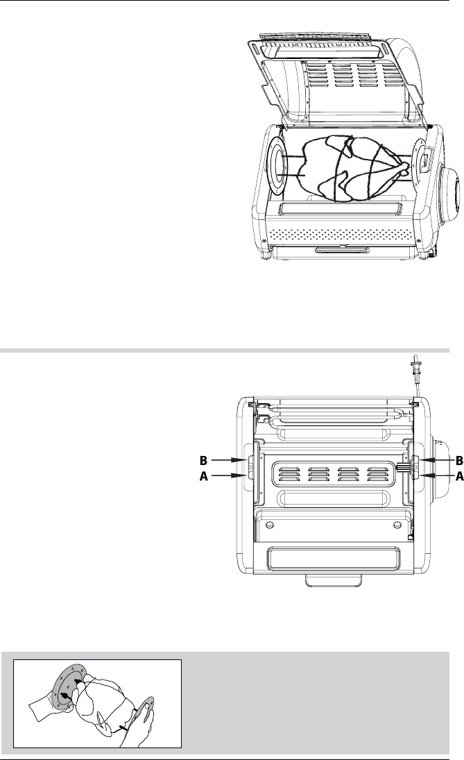Please be careful – both the food and the Rotisserie get hot. Make any adjustments
