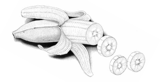 Select fruits such as peaches, strawberries, bananas, apples, etc.