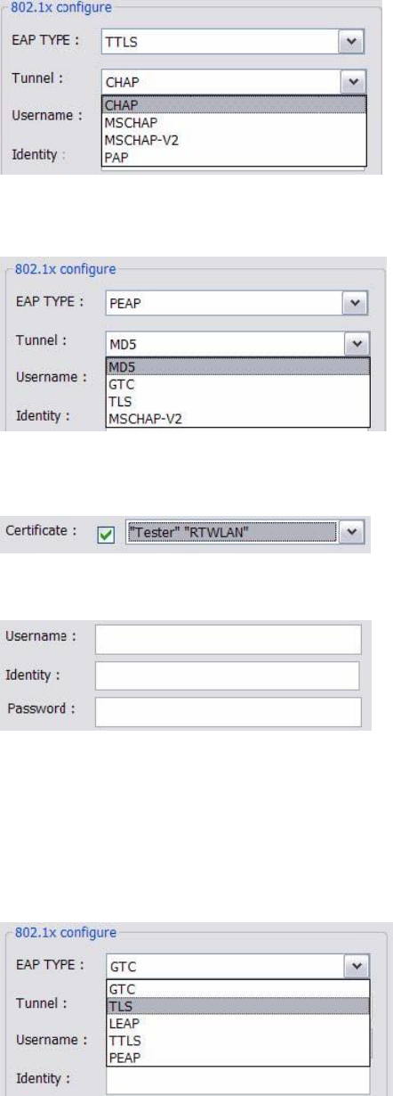 Step 3.1.2 : When set PEAP, set Tunnel Type to MD5 , GTC , TLS , or