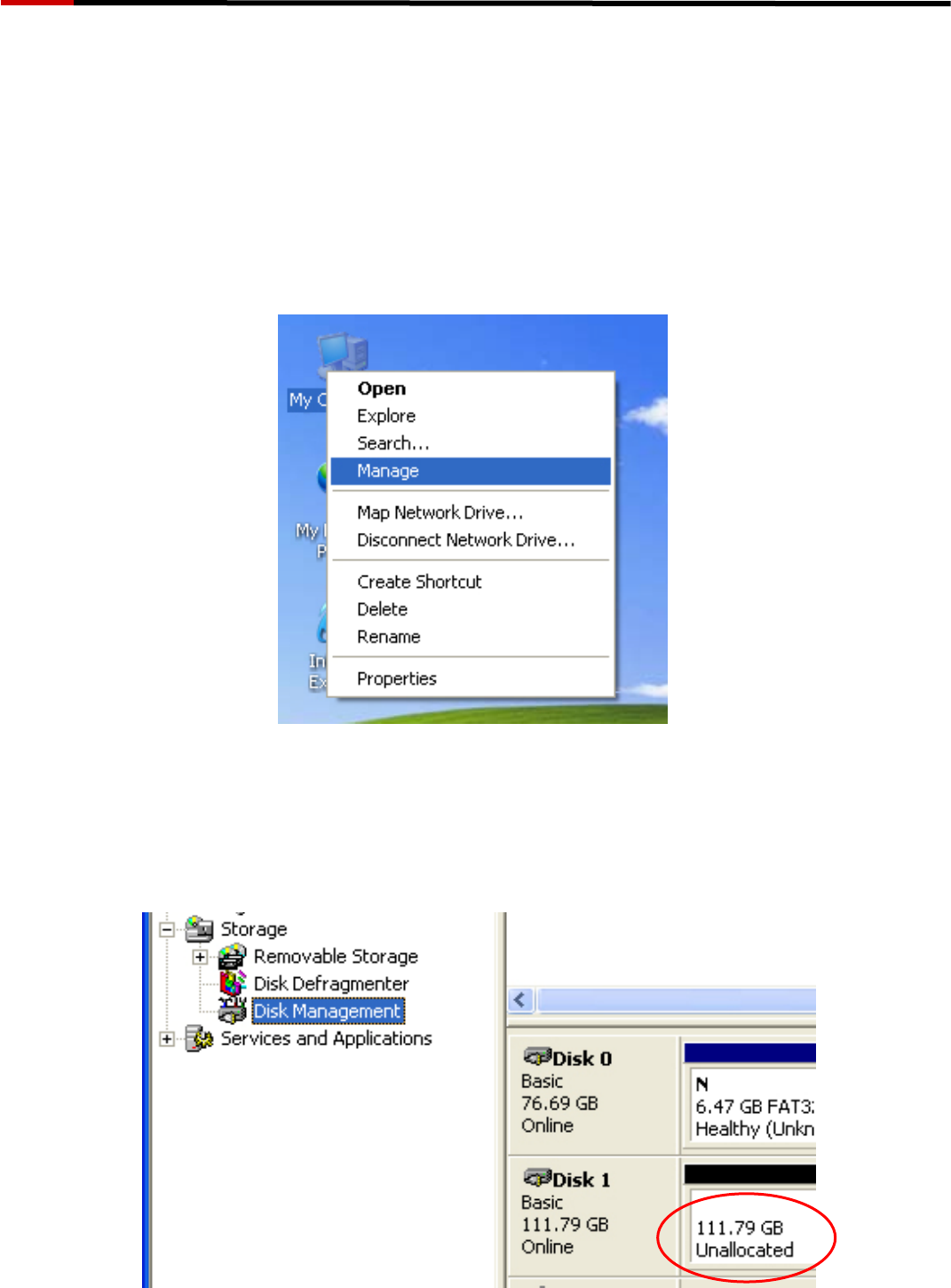 STEP1: Right-click “My Computer” icon and select the “Manage”
