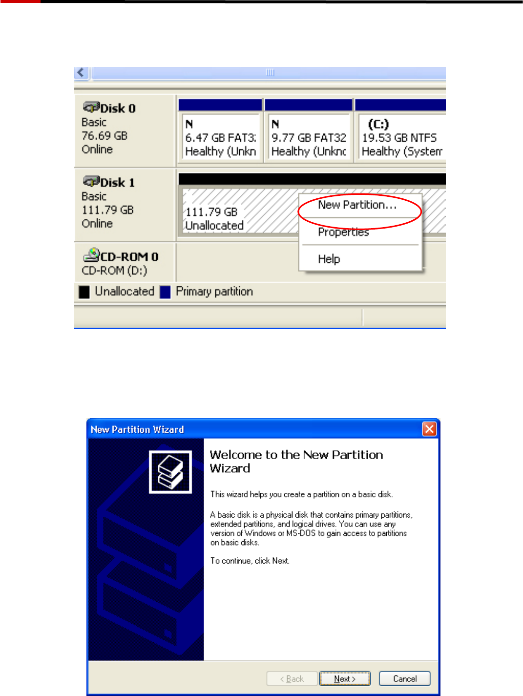 STEP4: The “New Partition Wizard” will appear. Please follow the