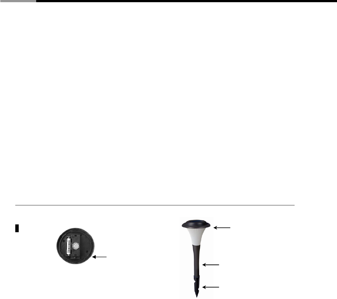 REMARK: Do not push the solar light on the solar panel when inserting it into the ground.