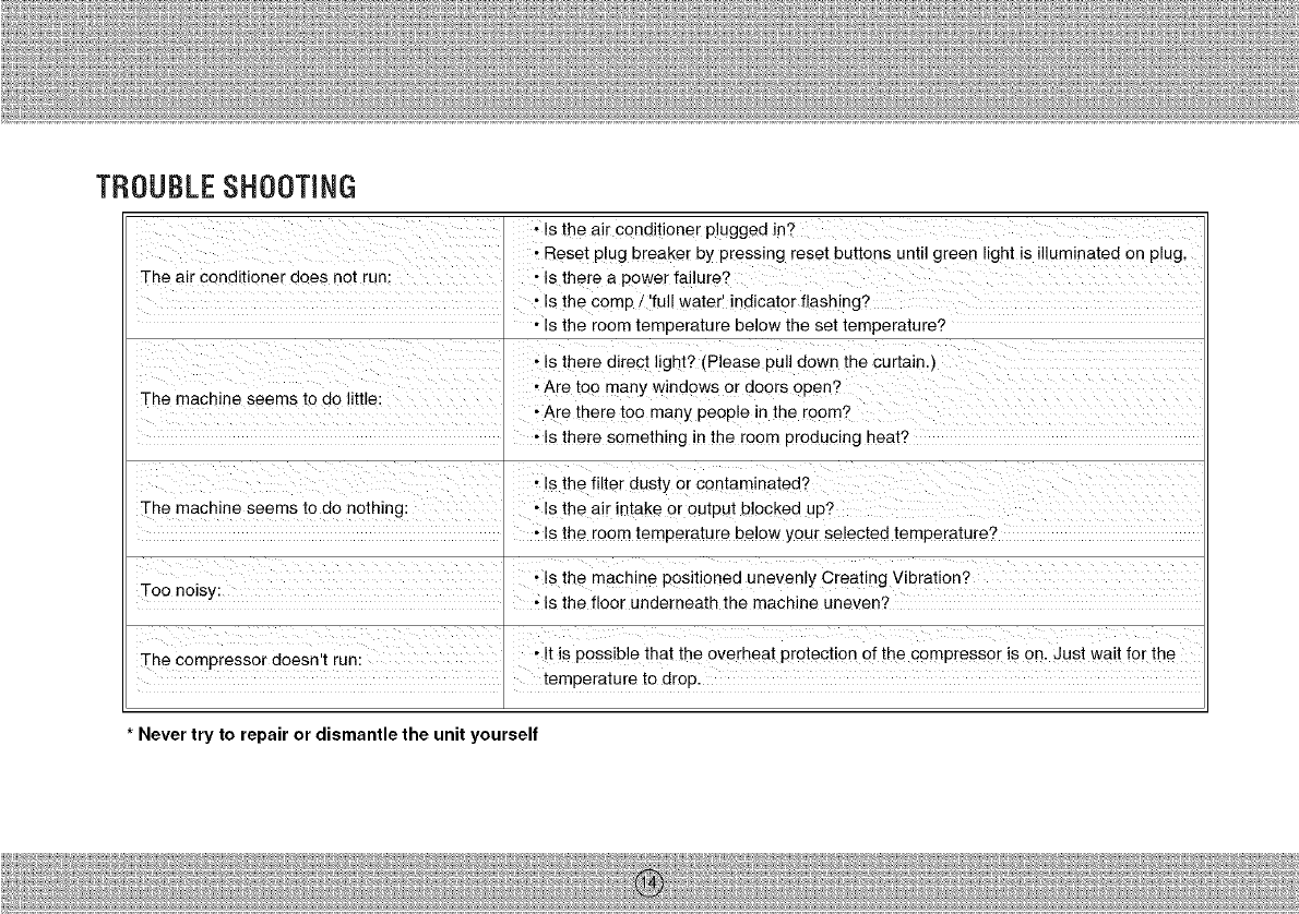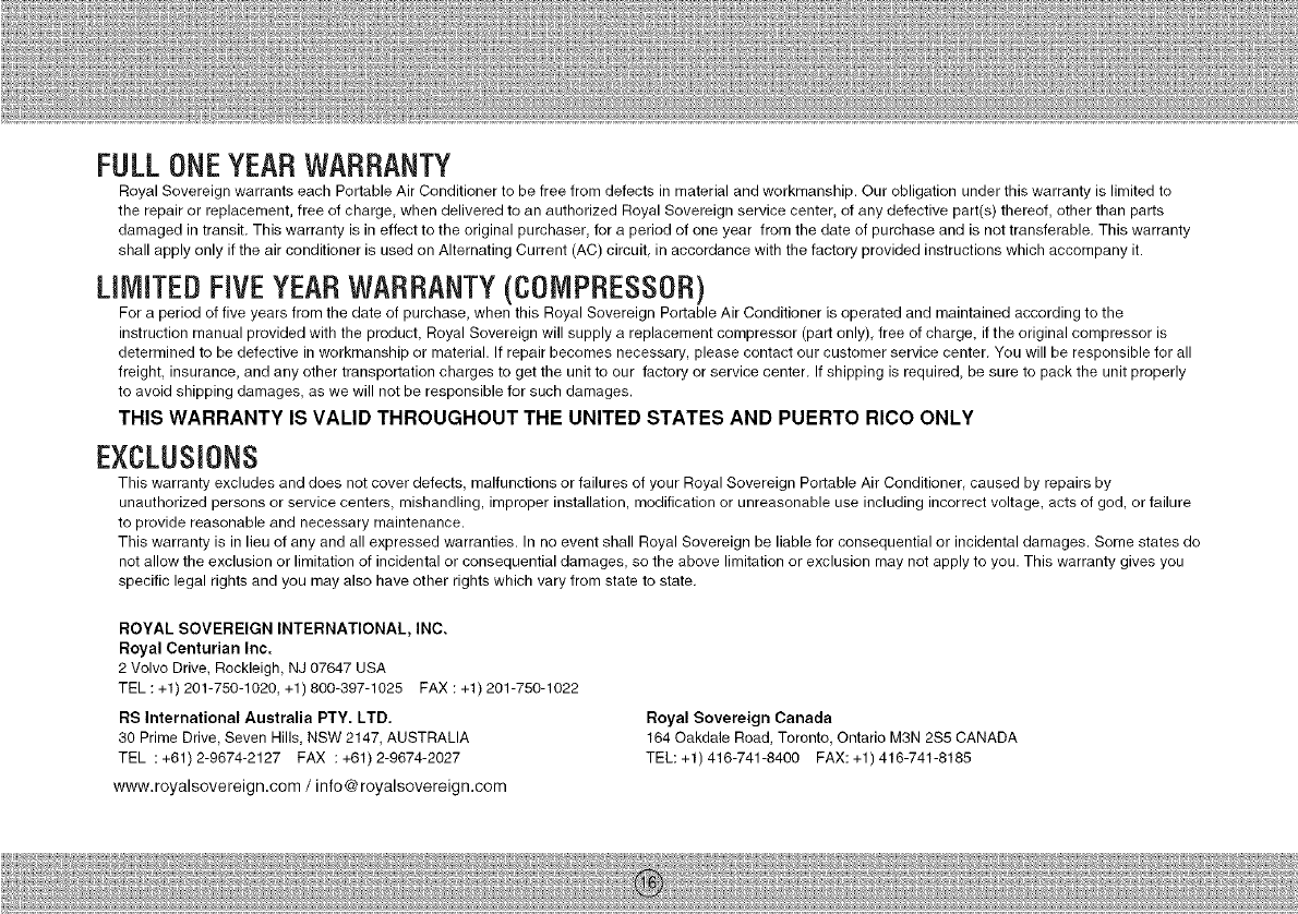 La garantia excluye y no cubre defectos, funcionamiento defectuoso o fallae del Acondicionador de Aire Portatil Royal Sovereign ocasionadas por reparaciones