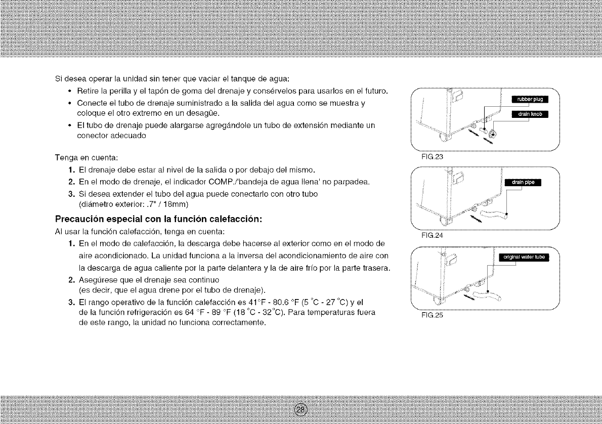 • Drene de la unidad el agua residual. Opere la unidad s61o en modo ventilaci6n durante unas pocas horas para Iograr un