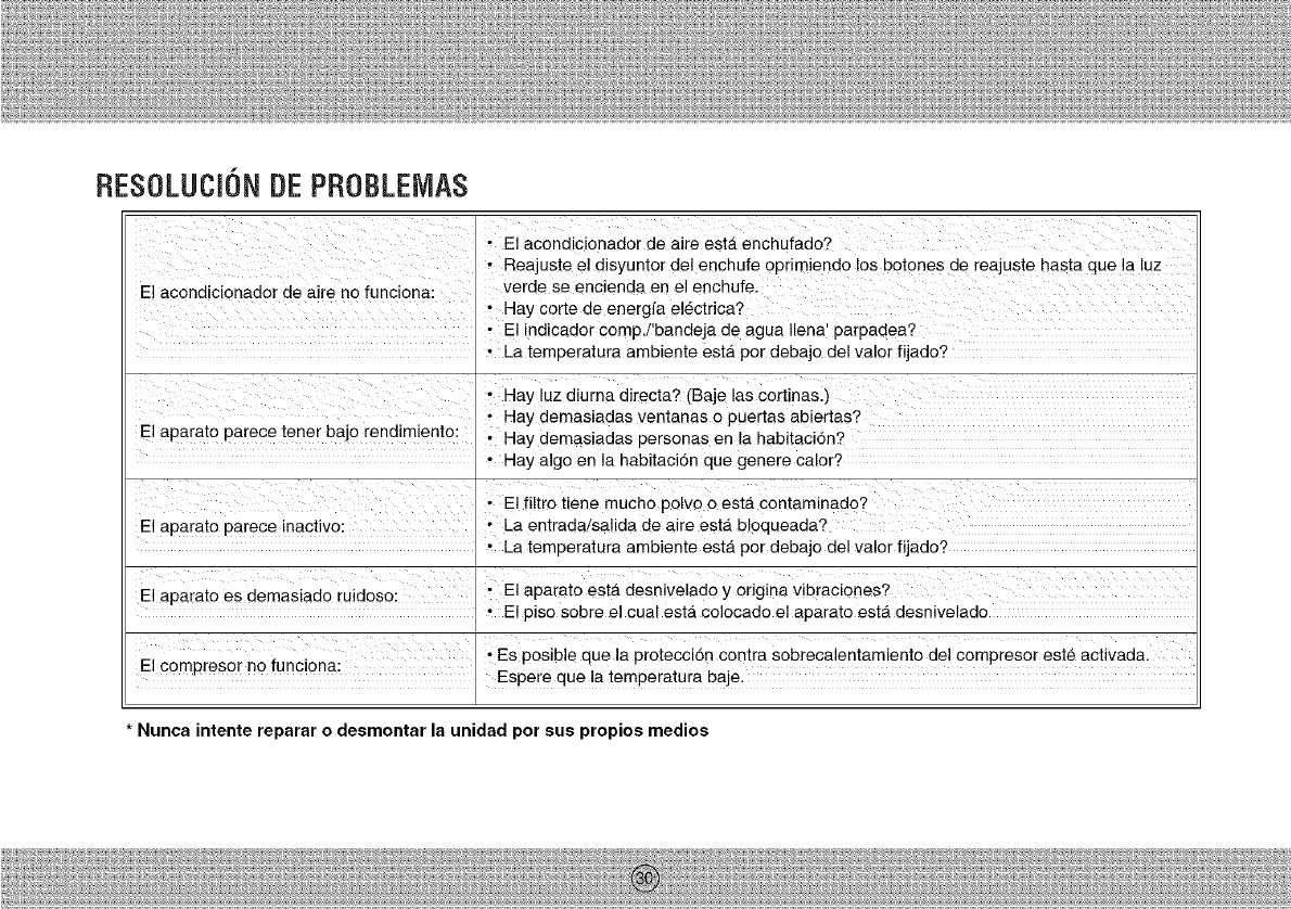 * Nunca intente reparar o desmontar la unidad por sus propios medios