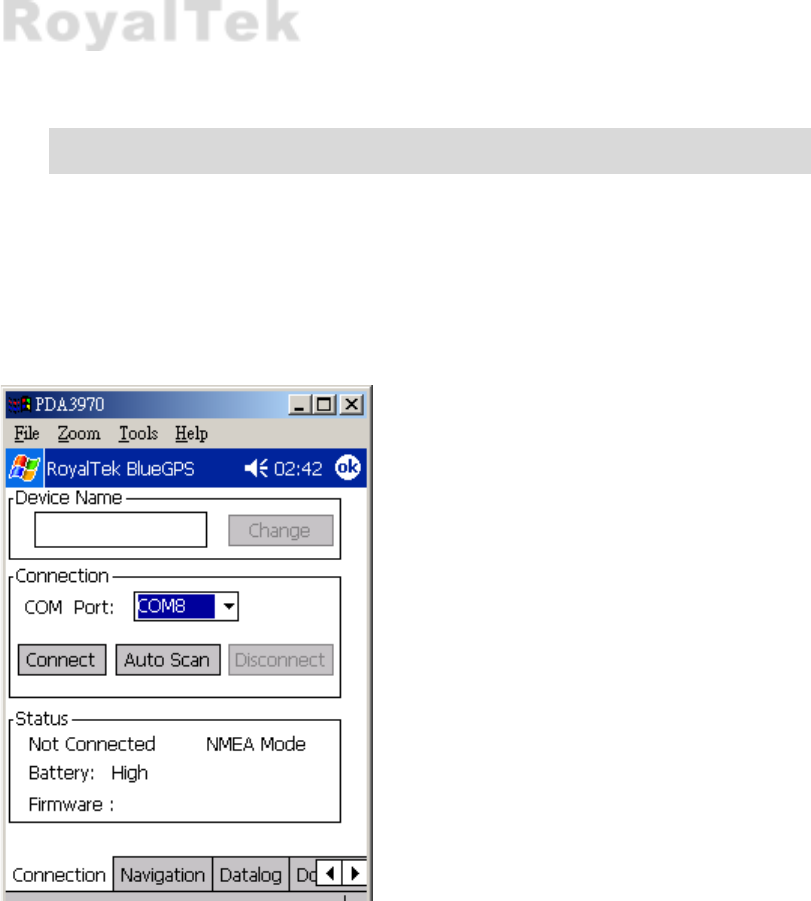 RoyalTek Company Ltd. BlueGPS - Bluetooth Transmitter Main Page