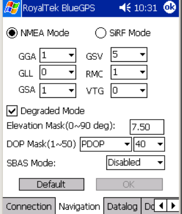 Setup the parameters of NMEA Mode or SiRF Mode.