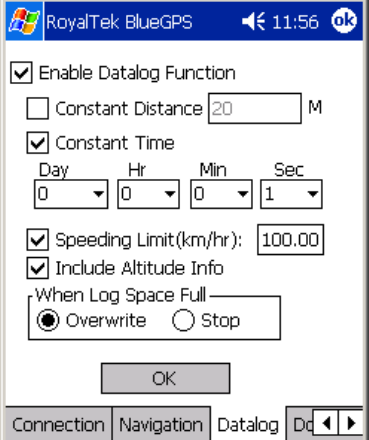 BlueGPS will overwrite the older data when memory is full. (Unit: