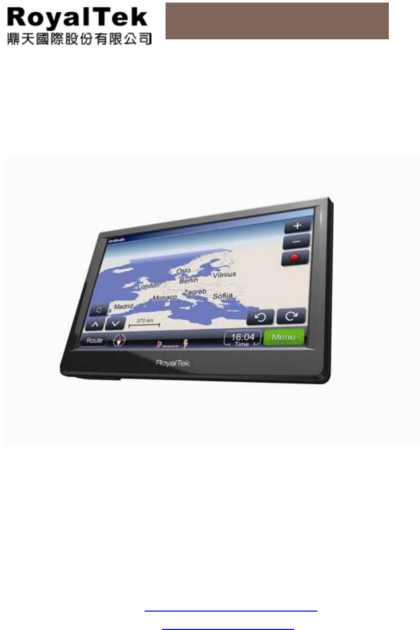 RoyalTek RN6 Portable Navigation Device User’s Guide Original issue: July 2009.