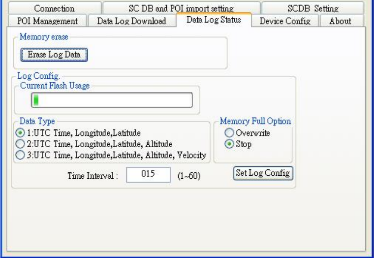 When user finished the configuration setup, press the “Set Log Config.” button to