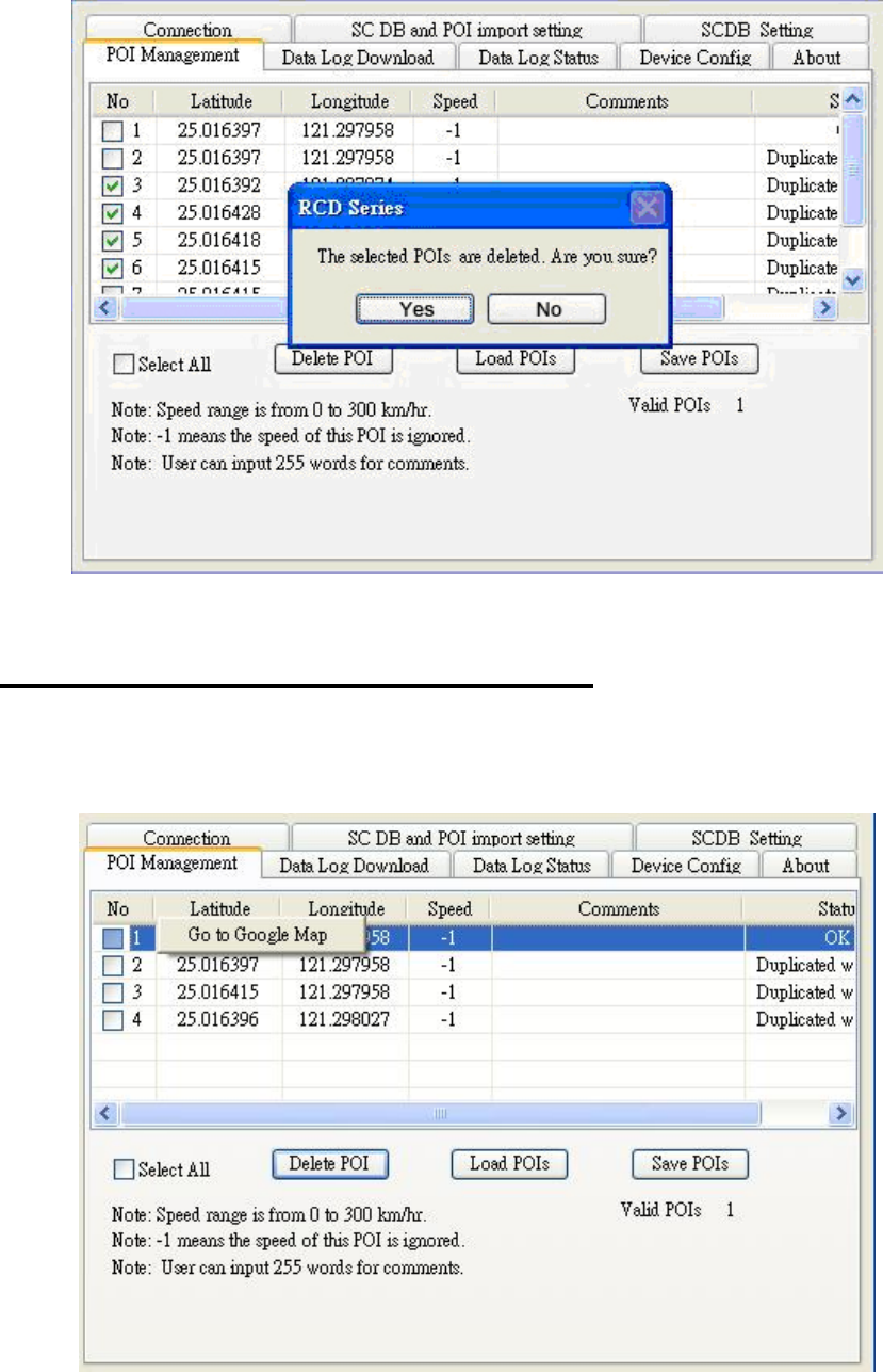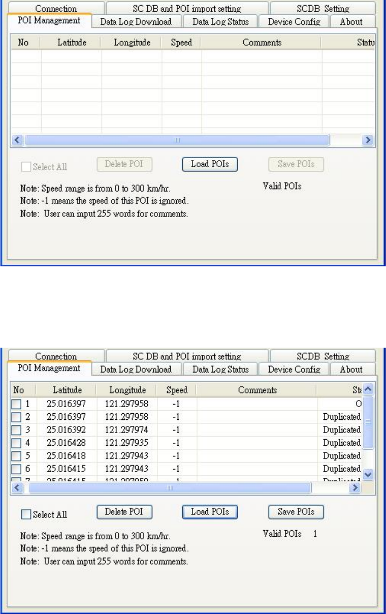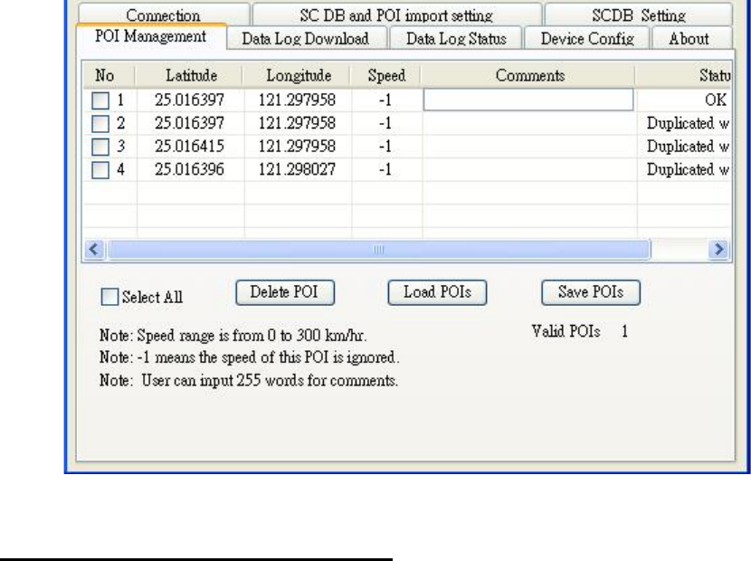 Note: (1) Saved POIs: User press the POI button, then the device will record a POI