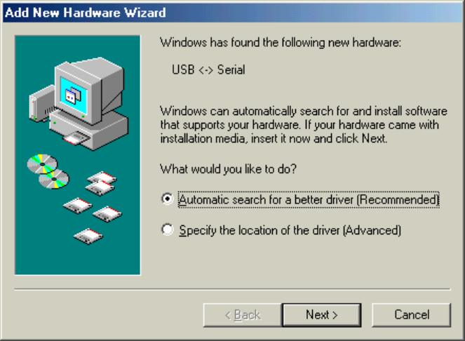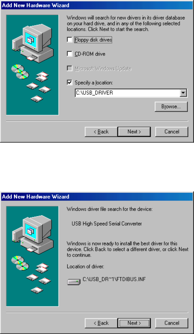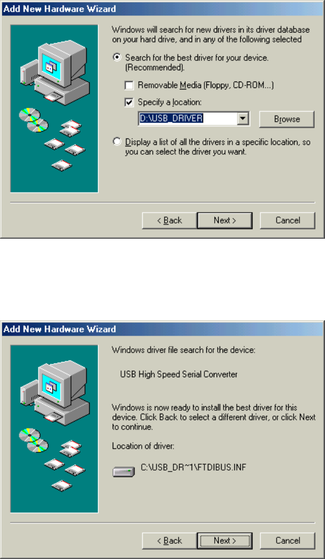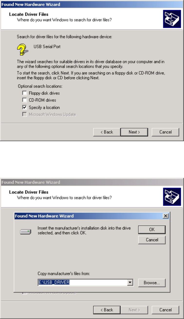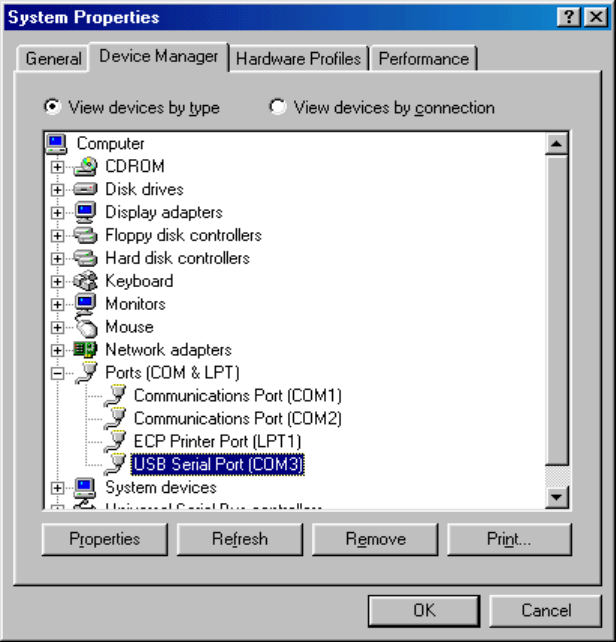 program of Windows95/98/ME/2000. Please setup the COM port connected