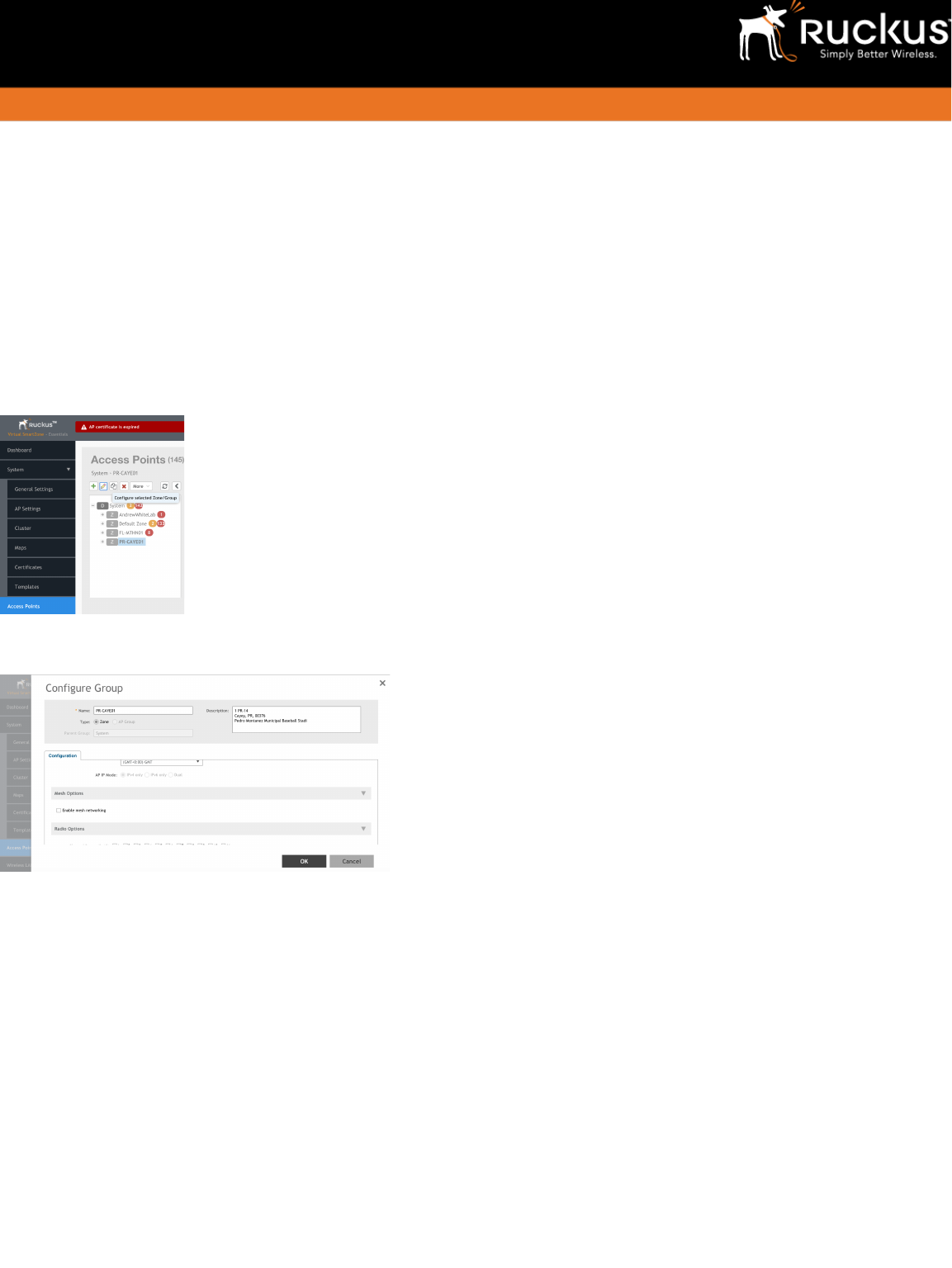 Verify that Mesh is not enabled for your vSZ 3.5 network (this is the default setting). Navigate to Access Points and select your AP Zone. Click