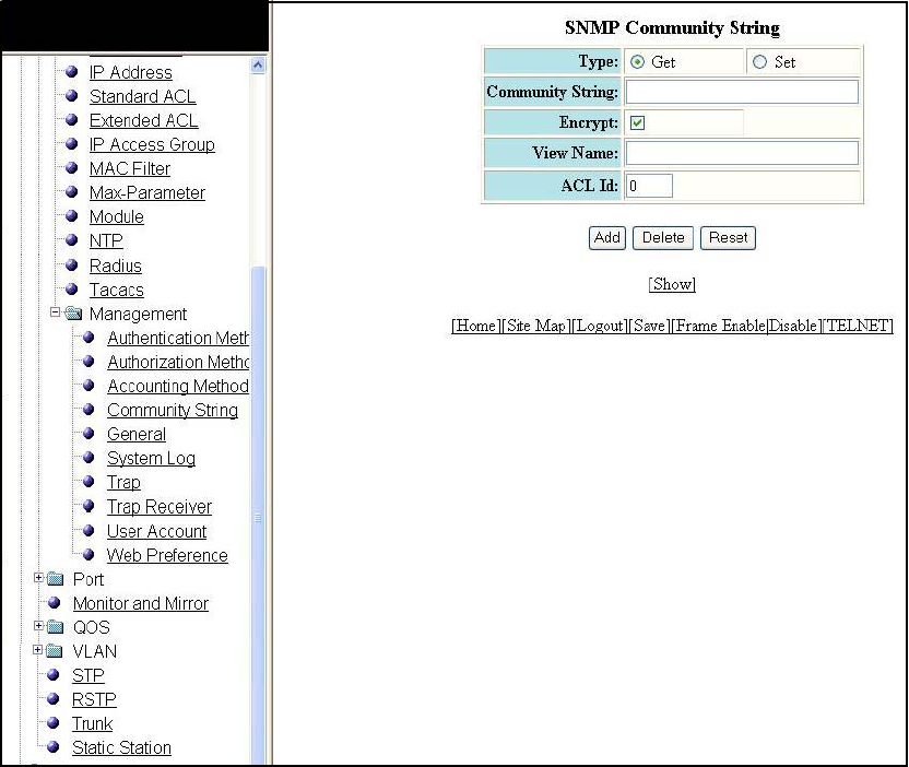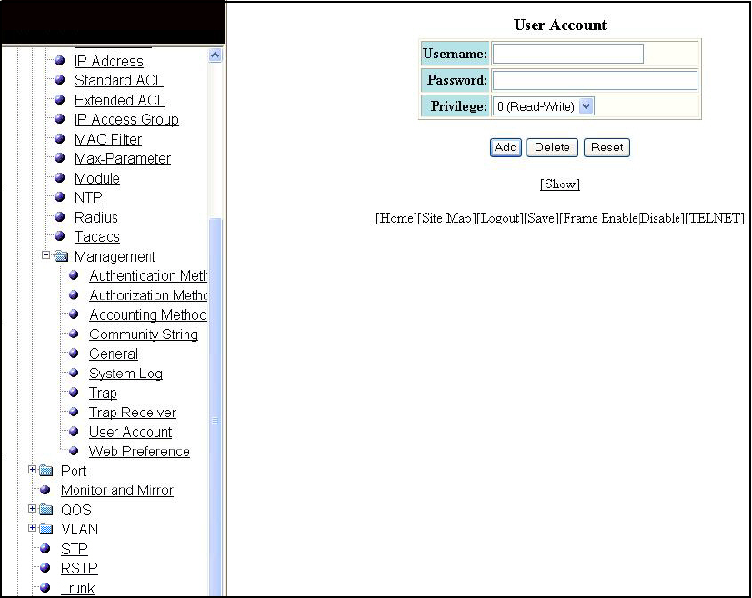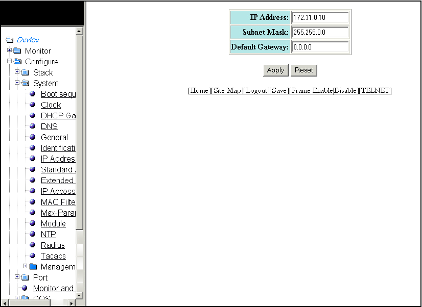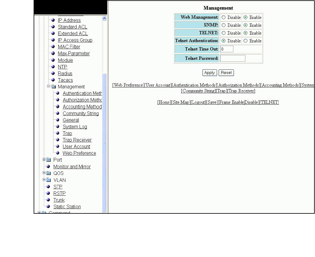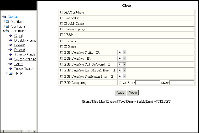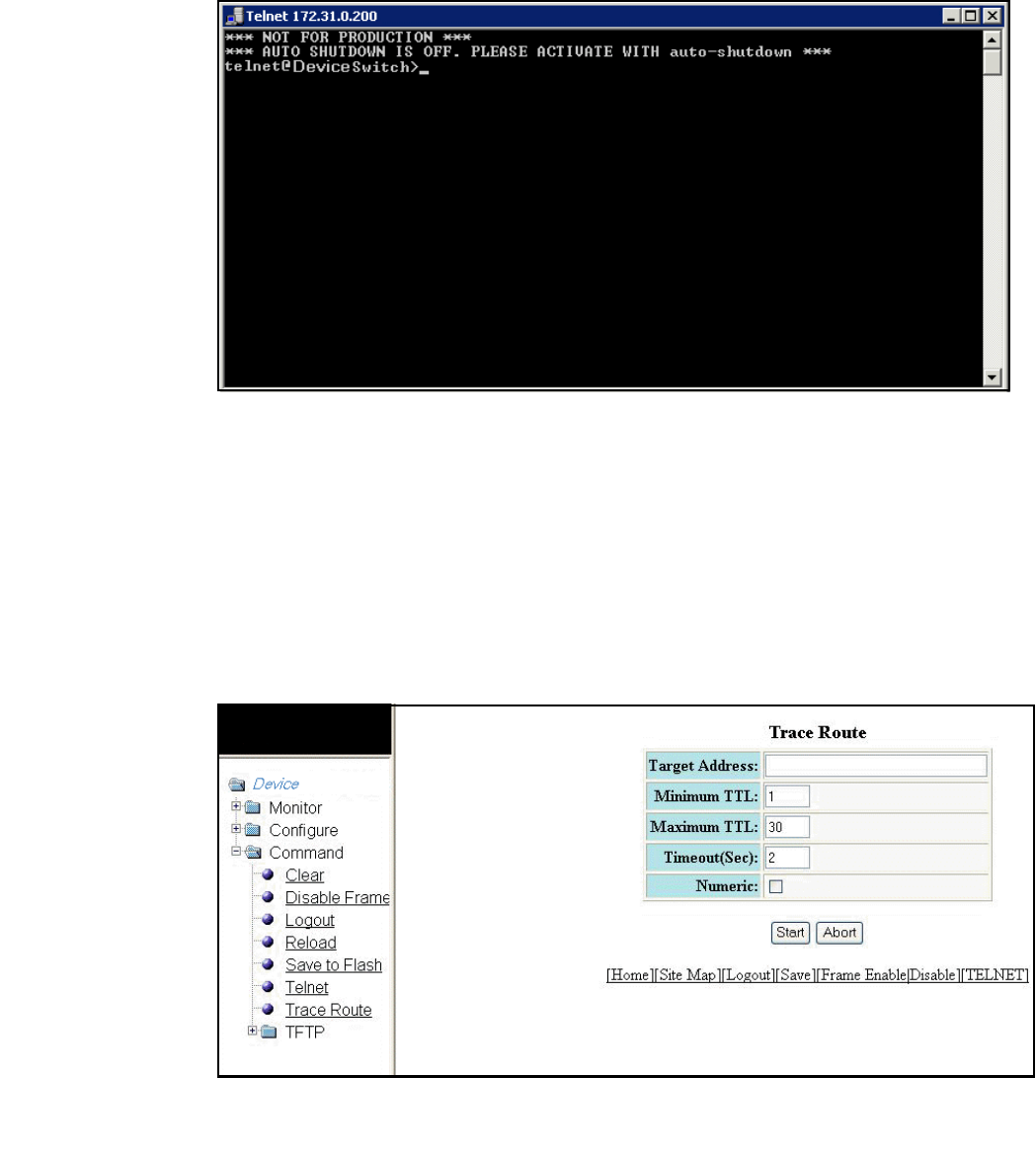 To open a Telnet CLI window, click Command on the left pane and select Telnet.