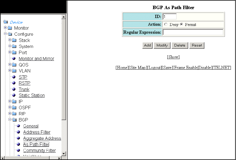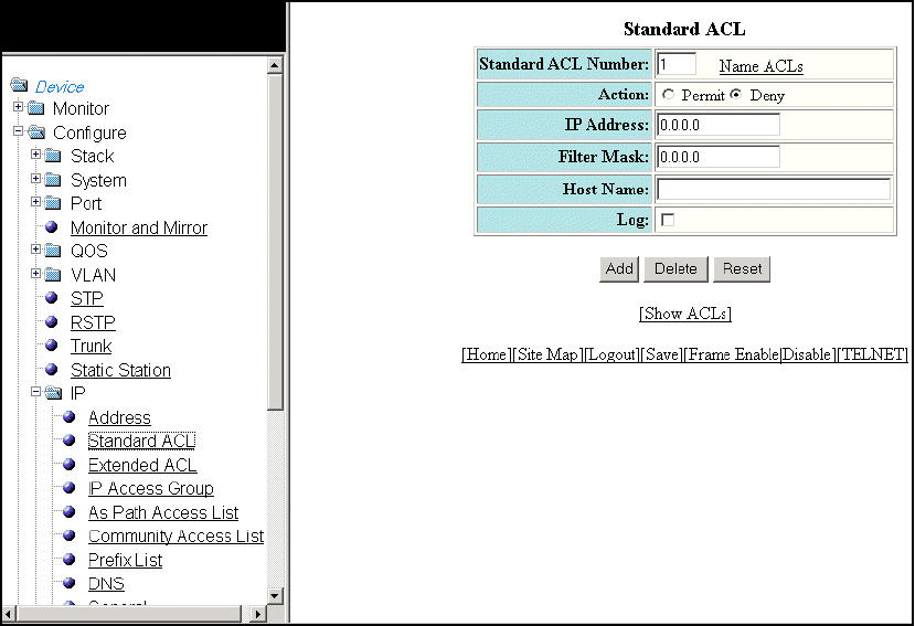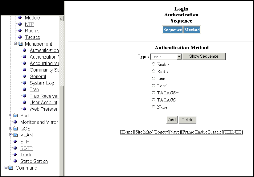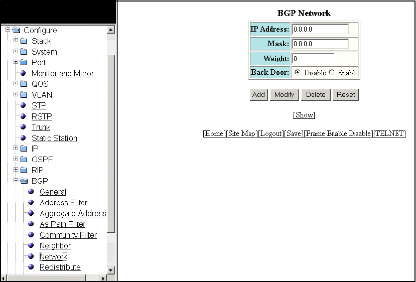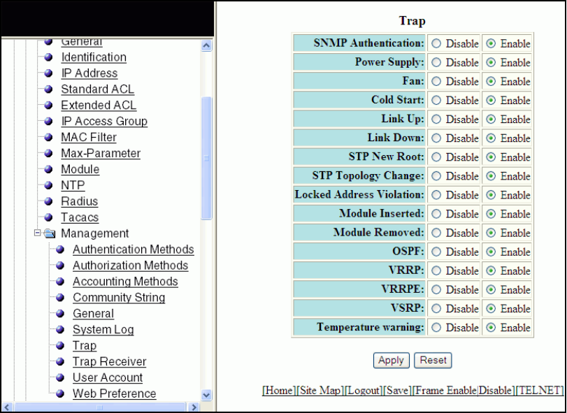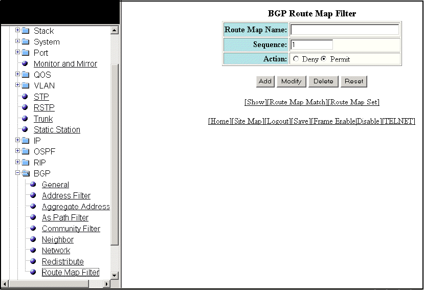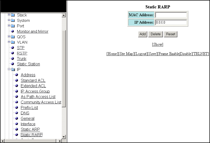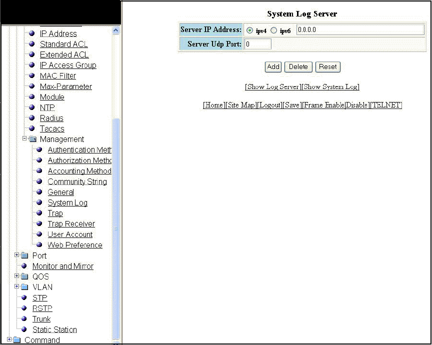 To open a Telnet CLI window, click Command on the left pane and select Telnet.
